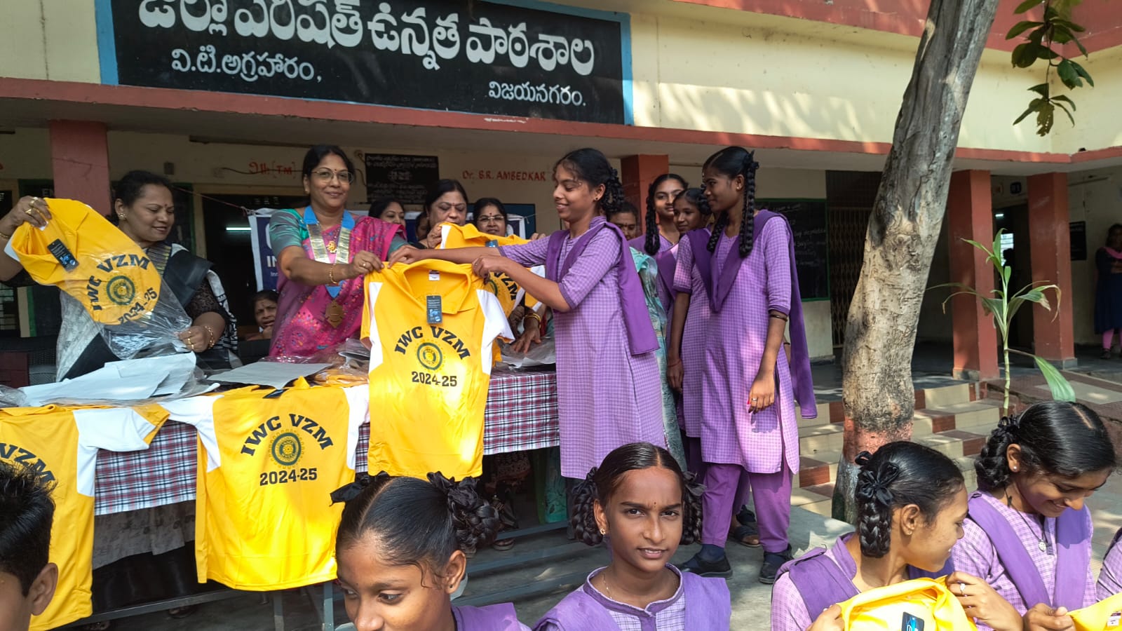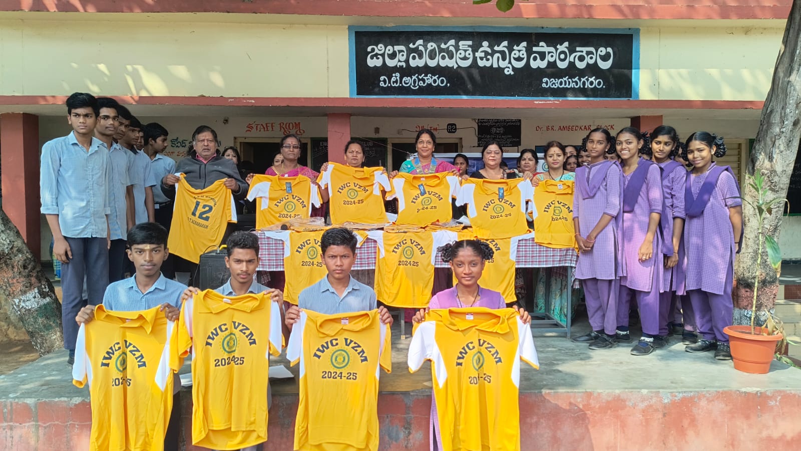 We donated 12 sports T-shirts to girls 12 sports T-Shirts to boys….for participating in District level participation.front side our Inner wheel logo is printed ..back side their school name is mentioned.