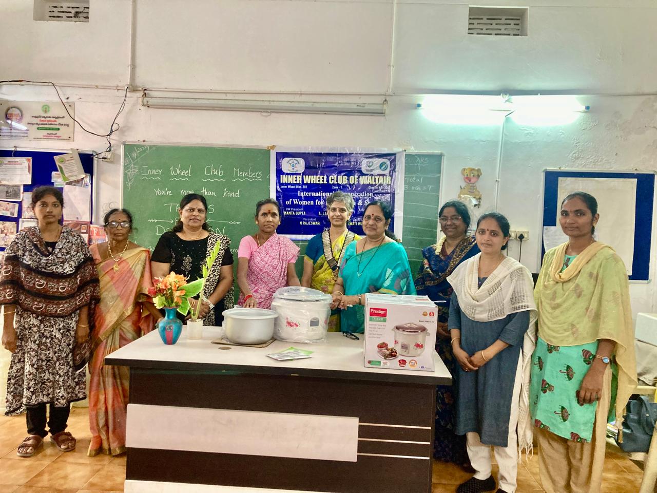 Description of the project – We visited GVMC School Chinna Waltair . We gave an electric rice cooker to the School cook for boiling eggs and making ragi malt to the children .