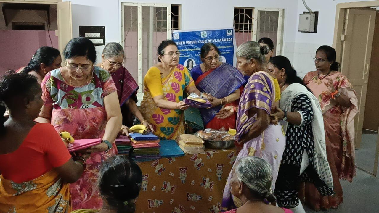 Inner wheel club of Vijayawada Celebrated “International Day of old persons” at Dandamudi Sarojini Devi & Veera Raghavaiah old Age home.We visited oldage home and distributed sarees,fruits,buns & groceries to old women residing in home.Project sponsored by PDC Rashmi Samaram & PP V.Saroja.