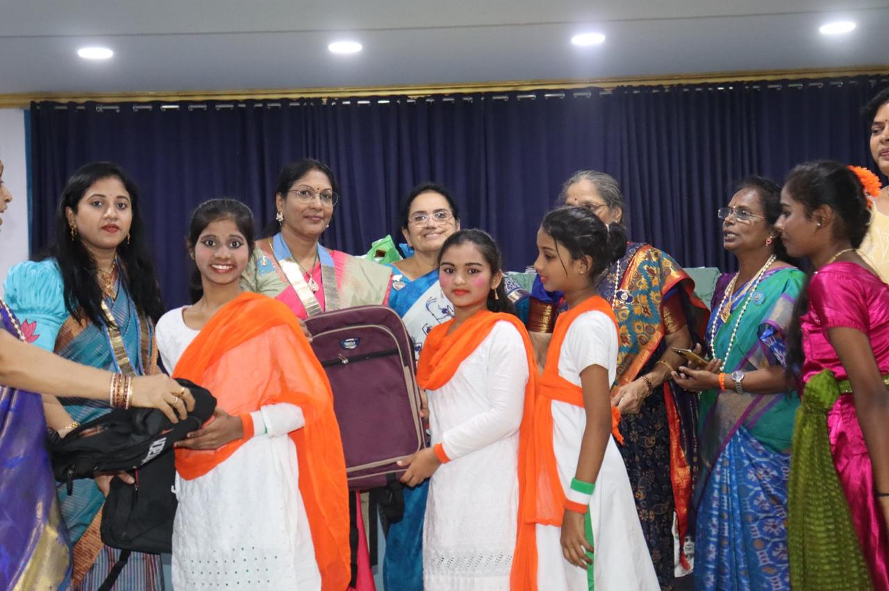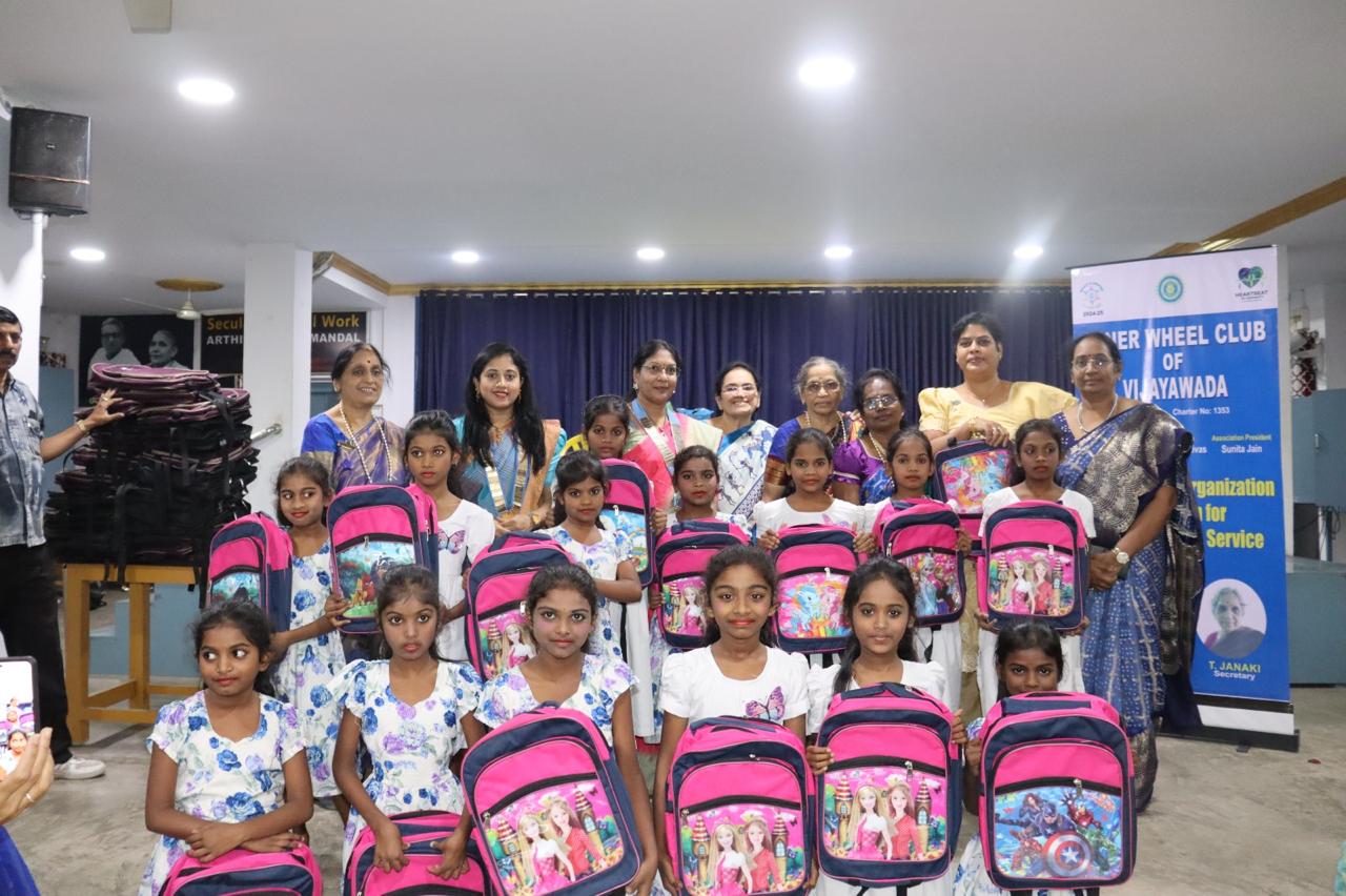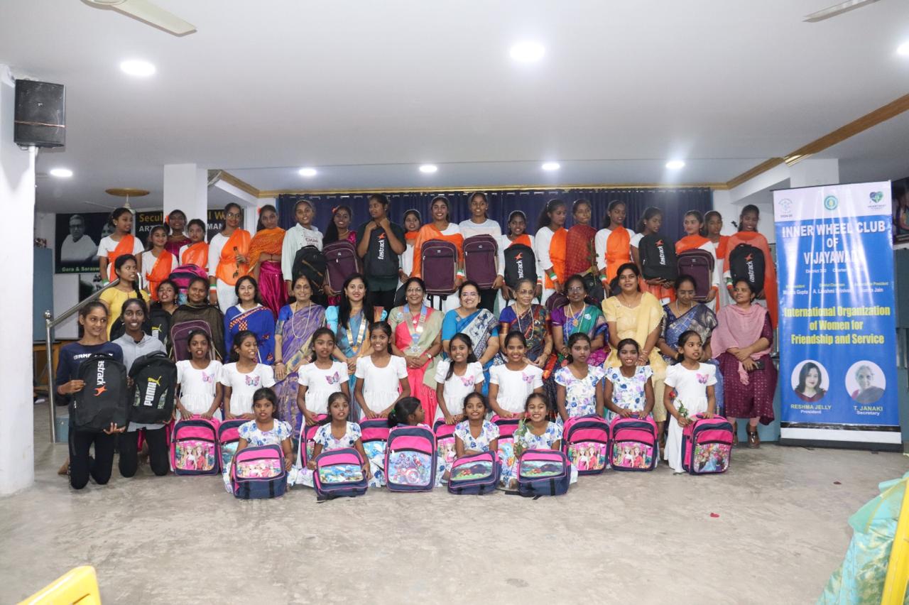 Inner Wheel Club of Vijayawada & Our District Chairman Lakshmi Srinivas distributed 100 bags,Books,Writing pads & Stationary kits to unprivileged girls.