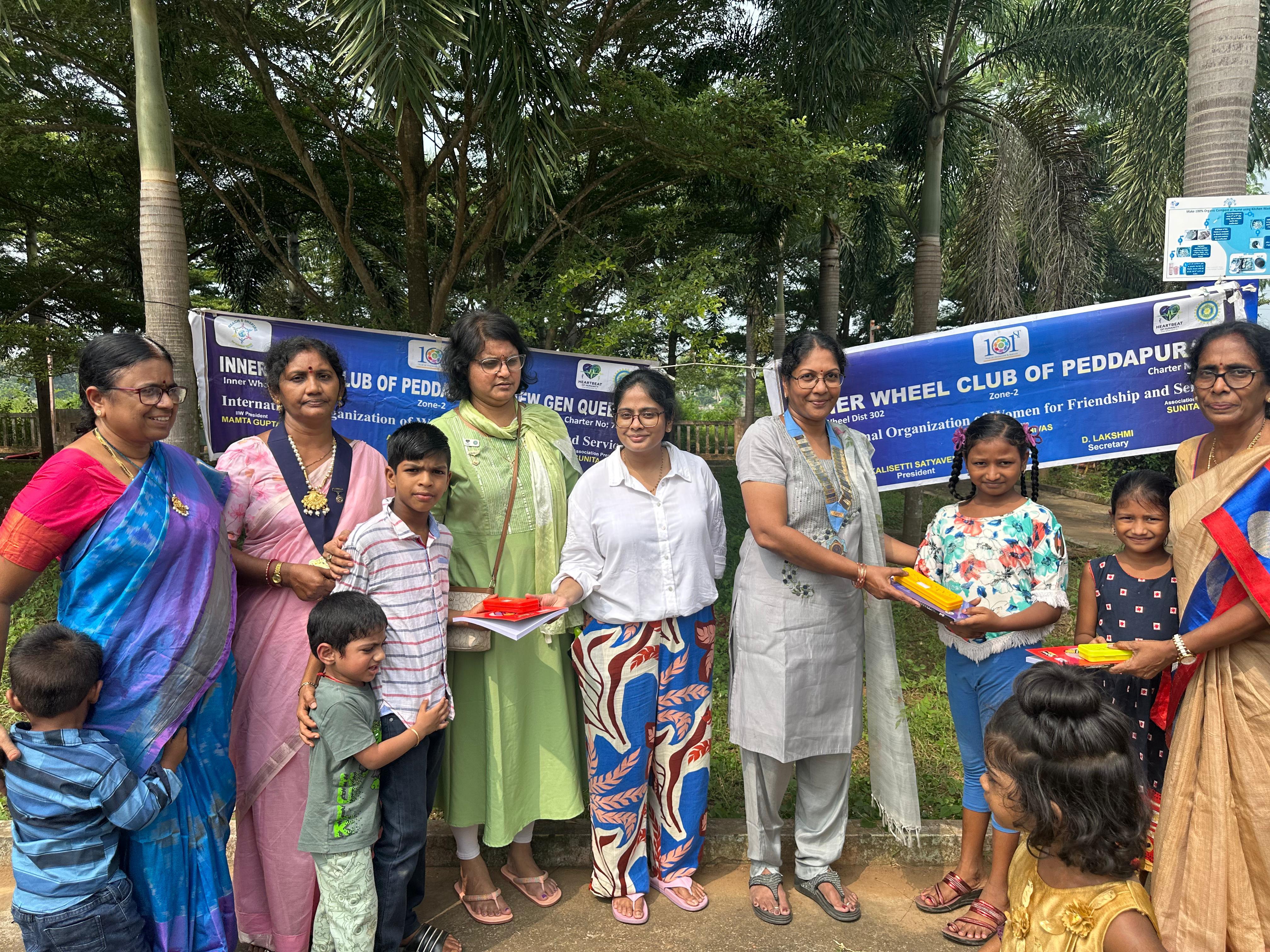 Project Description: LITERACY AND BRANDING Distributed stationary kit with pen,pencil,scale,eraser,sharpener and a pencil box/pouch,Note books,crayons,water colours with INNER WHEEL logo stickers on them to the students of GOVERNMENT SCHOOL In presence of our District Chairman A.LAKSHMI SRINIVAS garu 101 kits will be distributed later to the remaining students after Dussehra Holidays In presence of our District Chairman A.LAKSHMI SRINIVAS garu Project cost:10,000/-