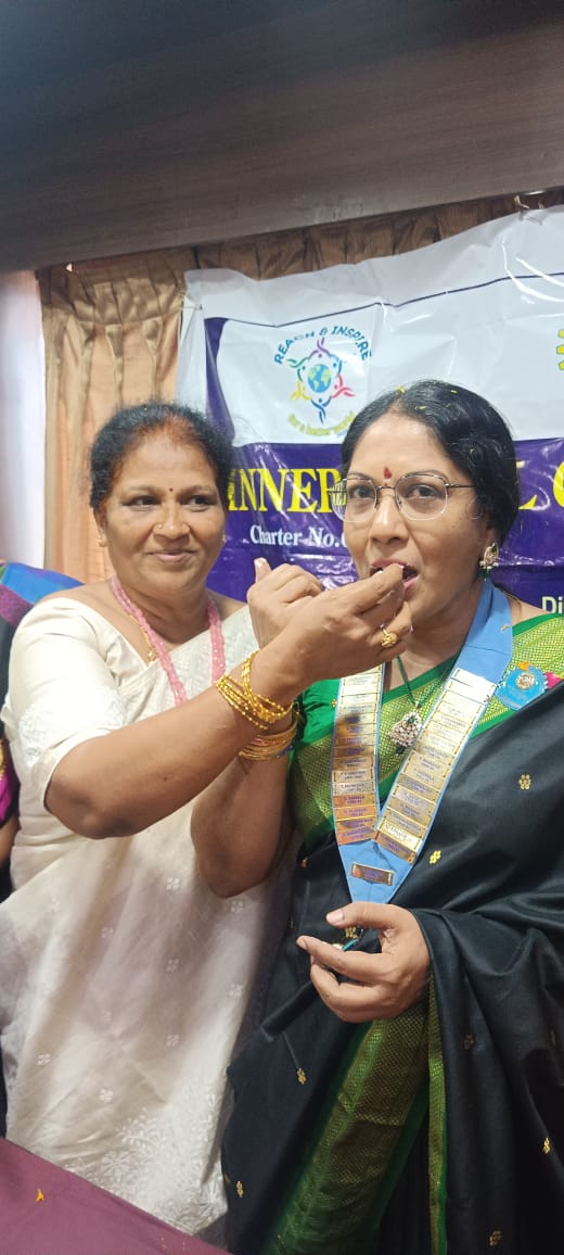 Description: IWC of Kakinada successfully completed District Chairman Lakshmi Srinivas garu official visit. We had a great time with our dynamic and ever smiling Lakshmi Srinivas garu.Enjoying the cake cutting and Lucky Dip with District Chairman and club members.