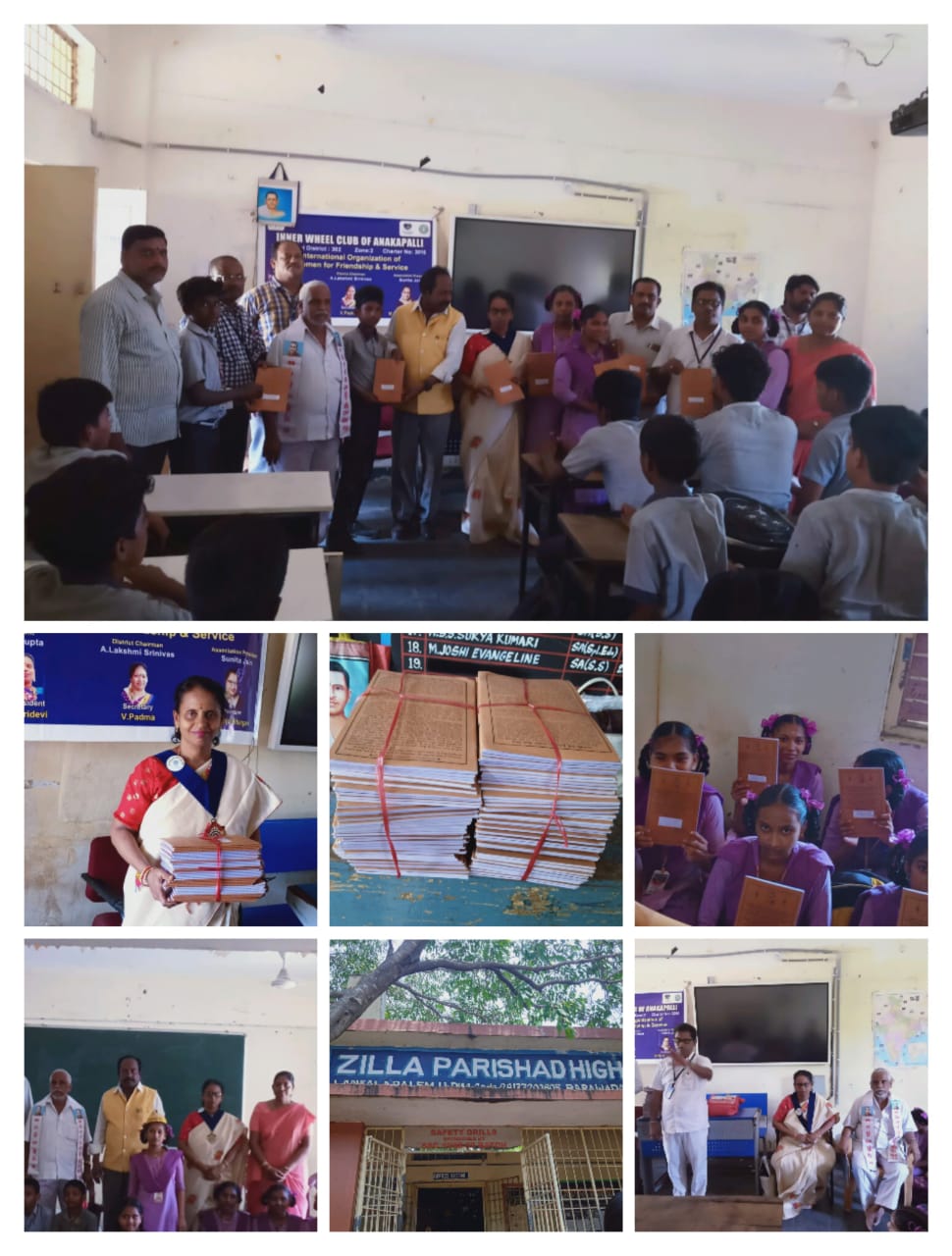So we Inner Wheel Club of Anakapalle donated notes at Zilla parishad school