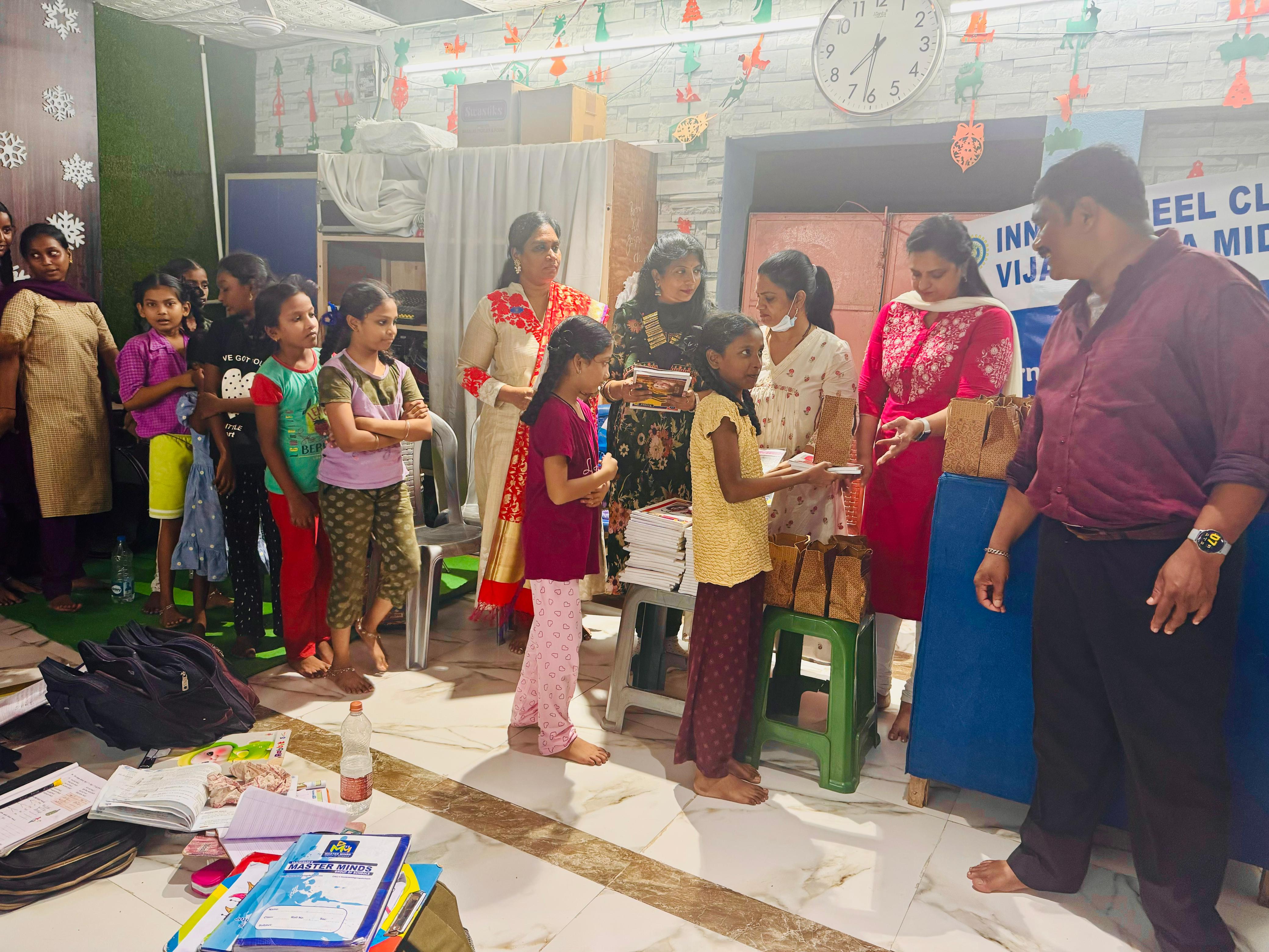 Distributed notebooks and sanitary kits including soaps pastes and shampoos to students of tution point in slum area which we adopted to support throughout the year.