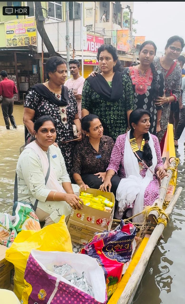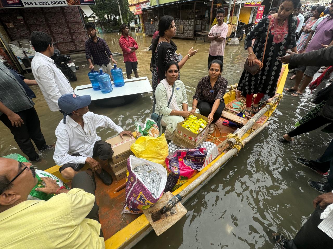 to flood victims in vidyaadharapuram, Vijayawada.