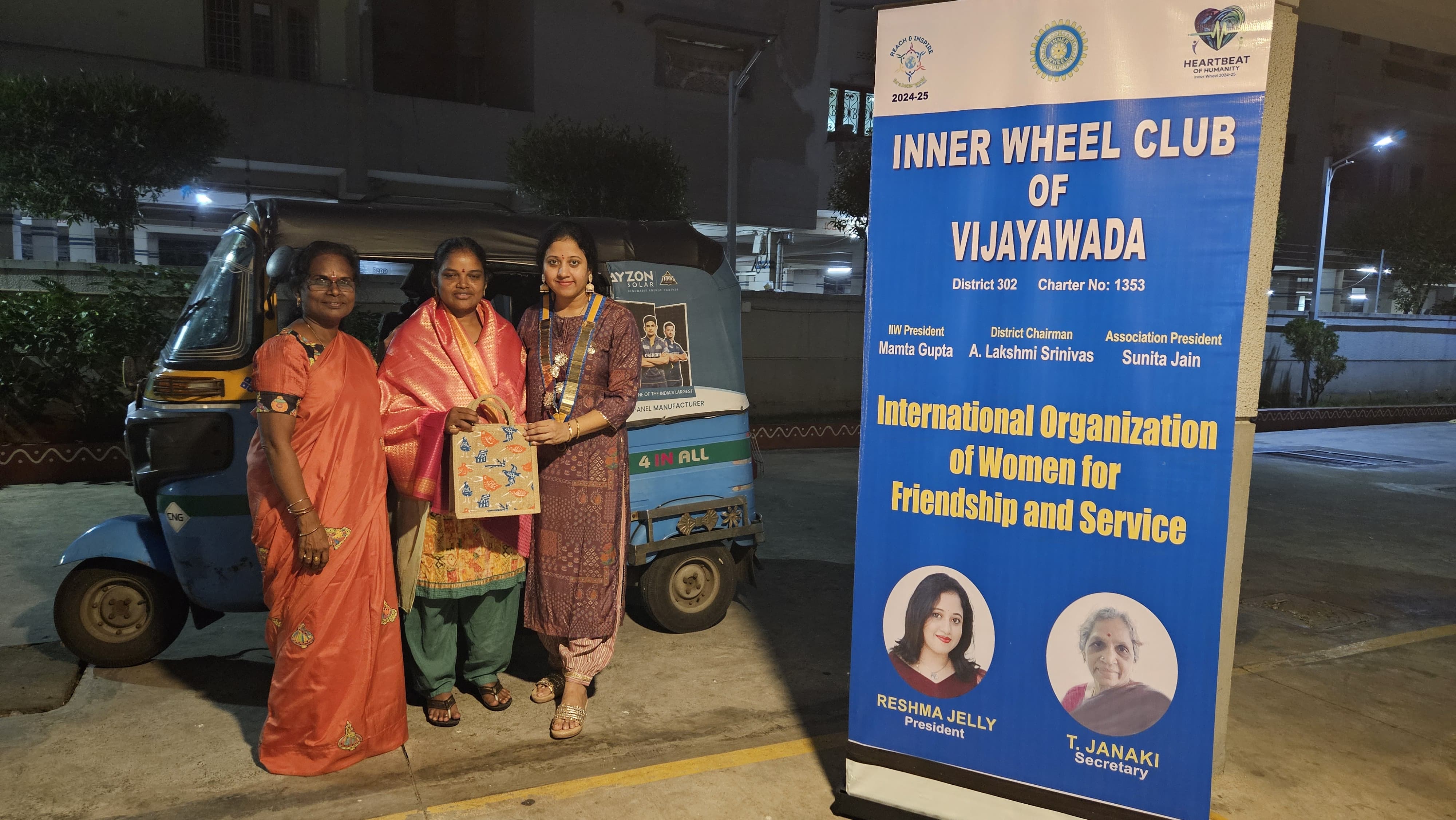 Inner Wheel Club of Vijayawada honoured Anusha, a woman auto driver driving for the past 9 years for her livelihood on the first day of Navaratri. We congratulated her as she broke stereotypes and inspired others by entering a male-dominated field.Project sponsored by President Reshma Jelly.