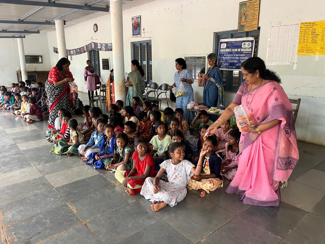 Distributed biscuits and chocolates to the children worth Rs 1100