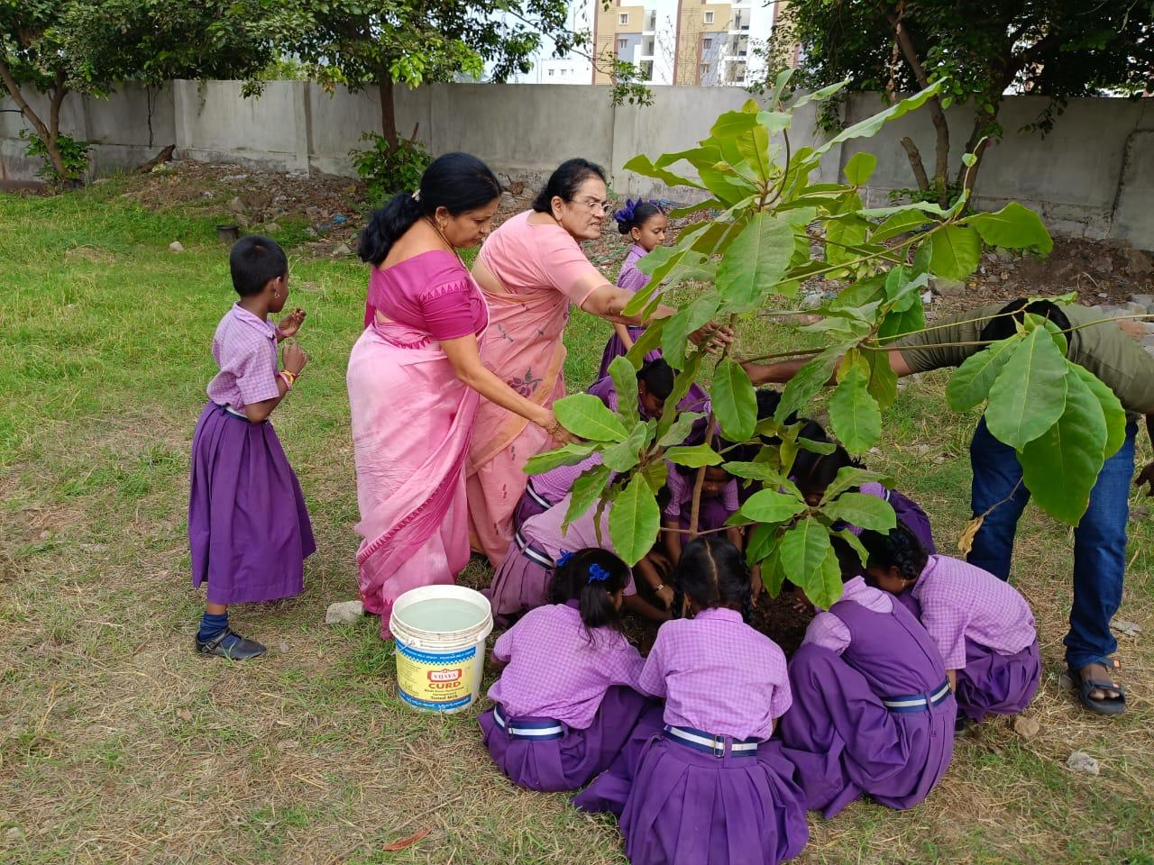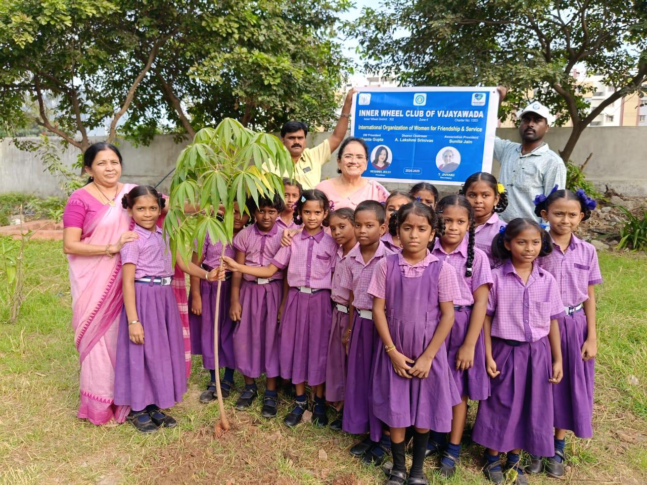 Inner Wheel club of Vijayawada members & School Students together Planted 30 saplings in Government Elementary school. Students learned how to take care of plant’s after plantation & watered the newly planted saplings Project Sponsored by PDC Rashmi Samaram & PDC Sakala Niyanta