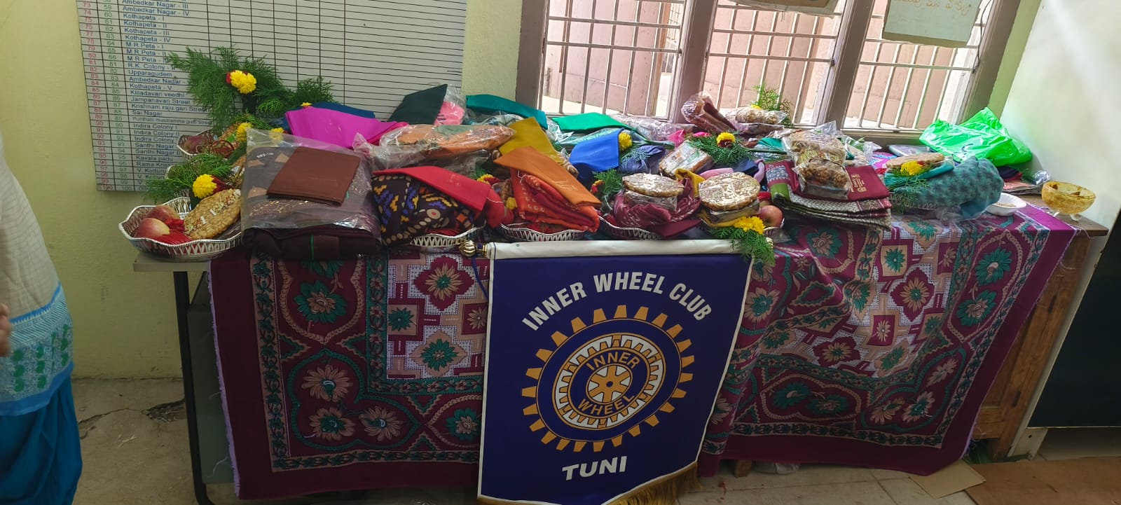 Description:- The Inner Wheel Club of Tuni (District 302) recently demonstrated its commitment to community welfare by providing essential support to pregnant women in need. The club generously donated a generous gift of sarees, blouse pieces, fruits (grapes, apples, groundnut chekeyes, dry fruits, bananas), flowers, and other necessities to 30 women facing challenging circumstances.