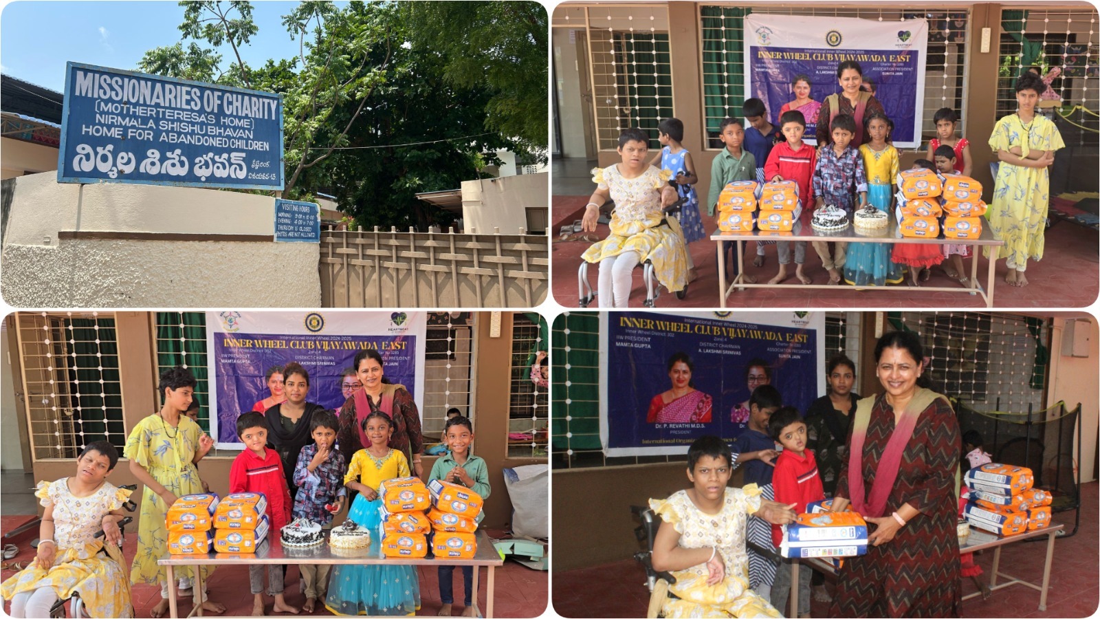 ➡️ Description : The Inner Wheel Club of Vijayawada East donated diapers worth of 5000 to specially challenged children and celebrated with a cake-cutting ceremony at Nirmala sisu bhavan Orphanage Home, spreading love, care, and joy to the little ones in a heartwarming and memorable way.