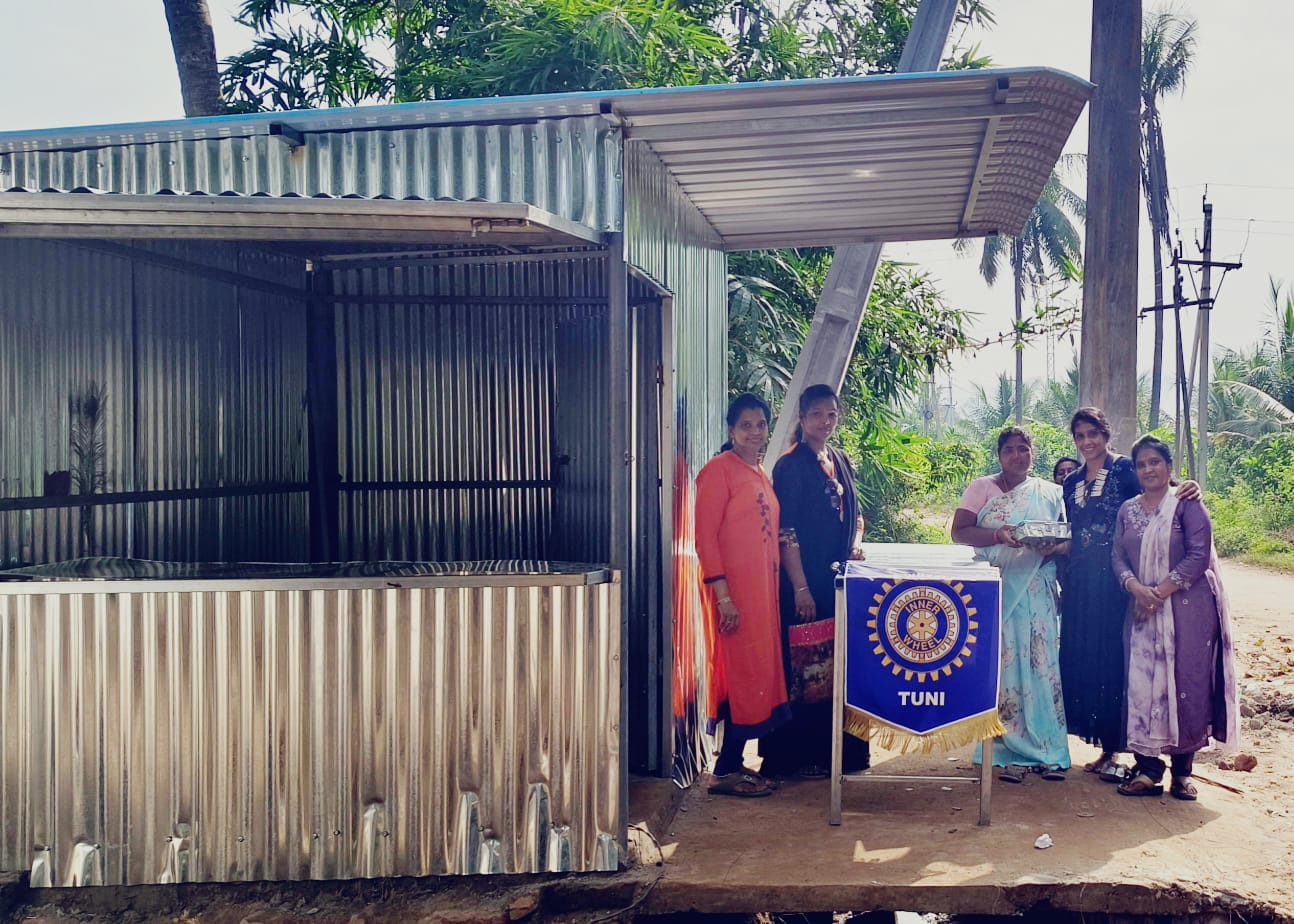 Description :- In response to the ongoing need for community support and empowerment of underprivileged individuals, the Inner Wheel Club, Tuni, initiated a donation project to aid a local woman in establishing a stable setup for her vegetable business. Recognizing her dedication and the challenges she faced, members collectively organized and contributed a fund of ₹50,000 to assist her in building a durable asbestos shed. The asbestos shed will serve as a reliable, weather-resistant shelter for her vegetable business, enabling her to expand and sustain her livelihood.