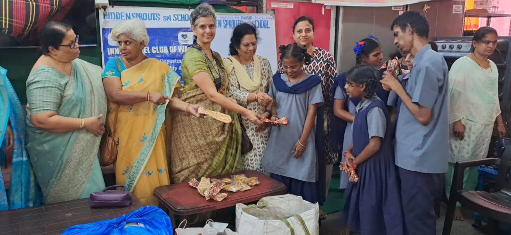 We visited Hidden Sprouts (mentally and physically challenged children). Hidden Sprouts a daycare centre that takes care of mentally and physically handicapped economically weaker section children.The organisation provides food and training free of cost for the children. We distributed pencil pouches and snacks to all the children.