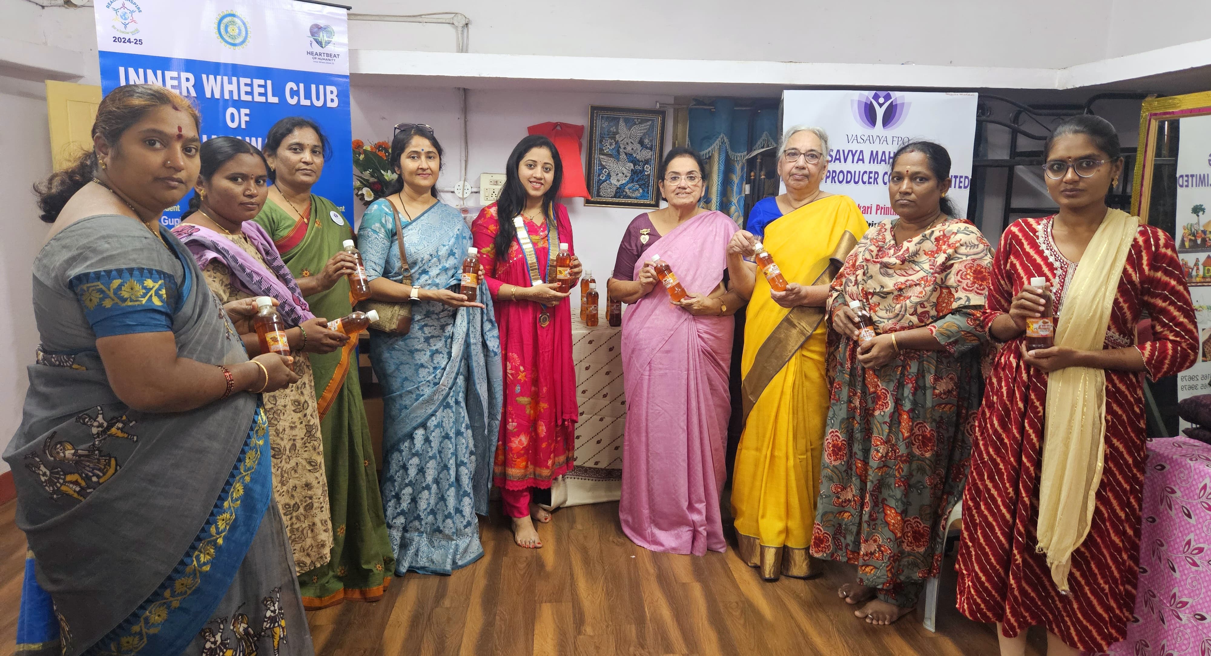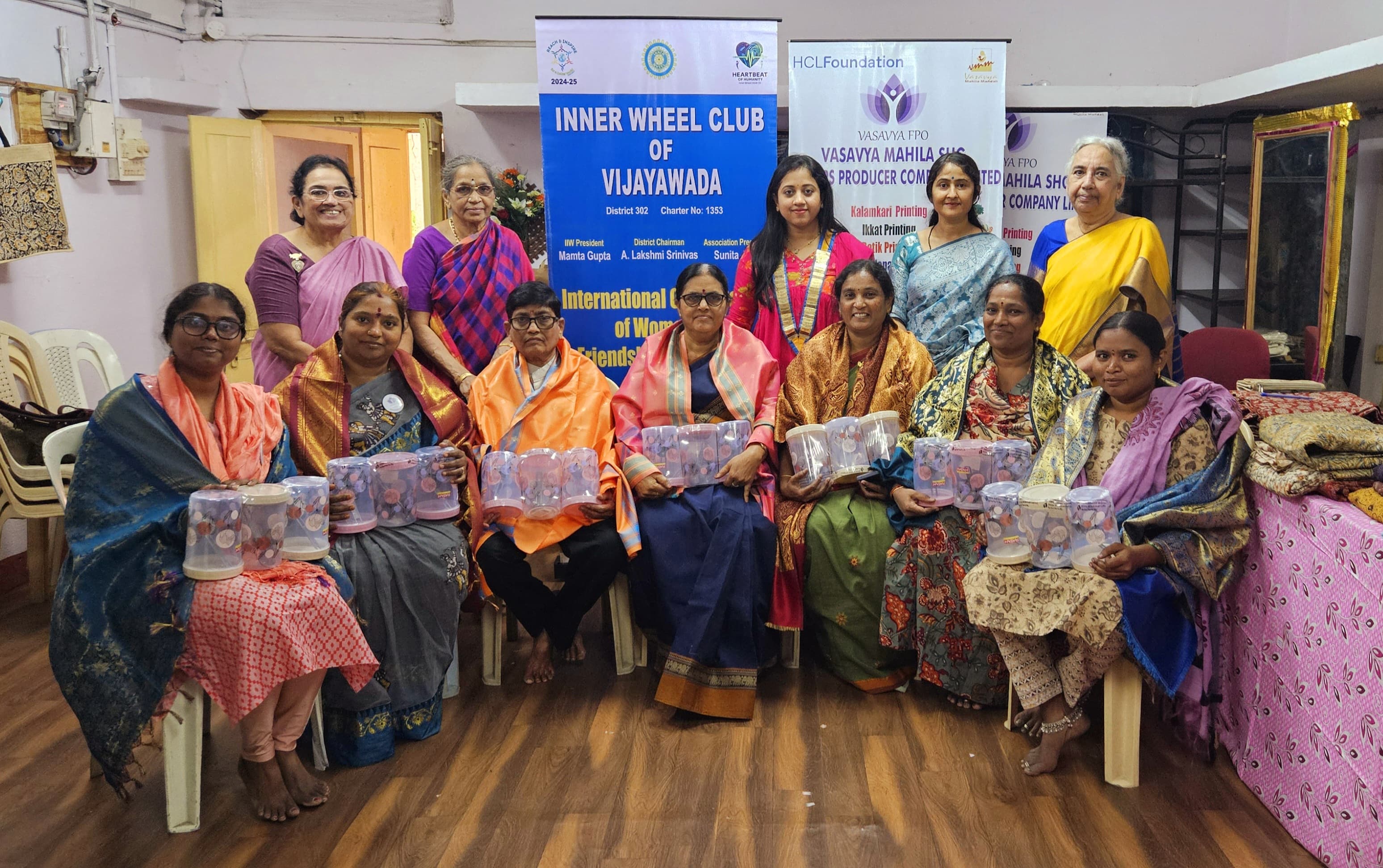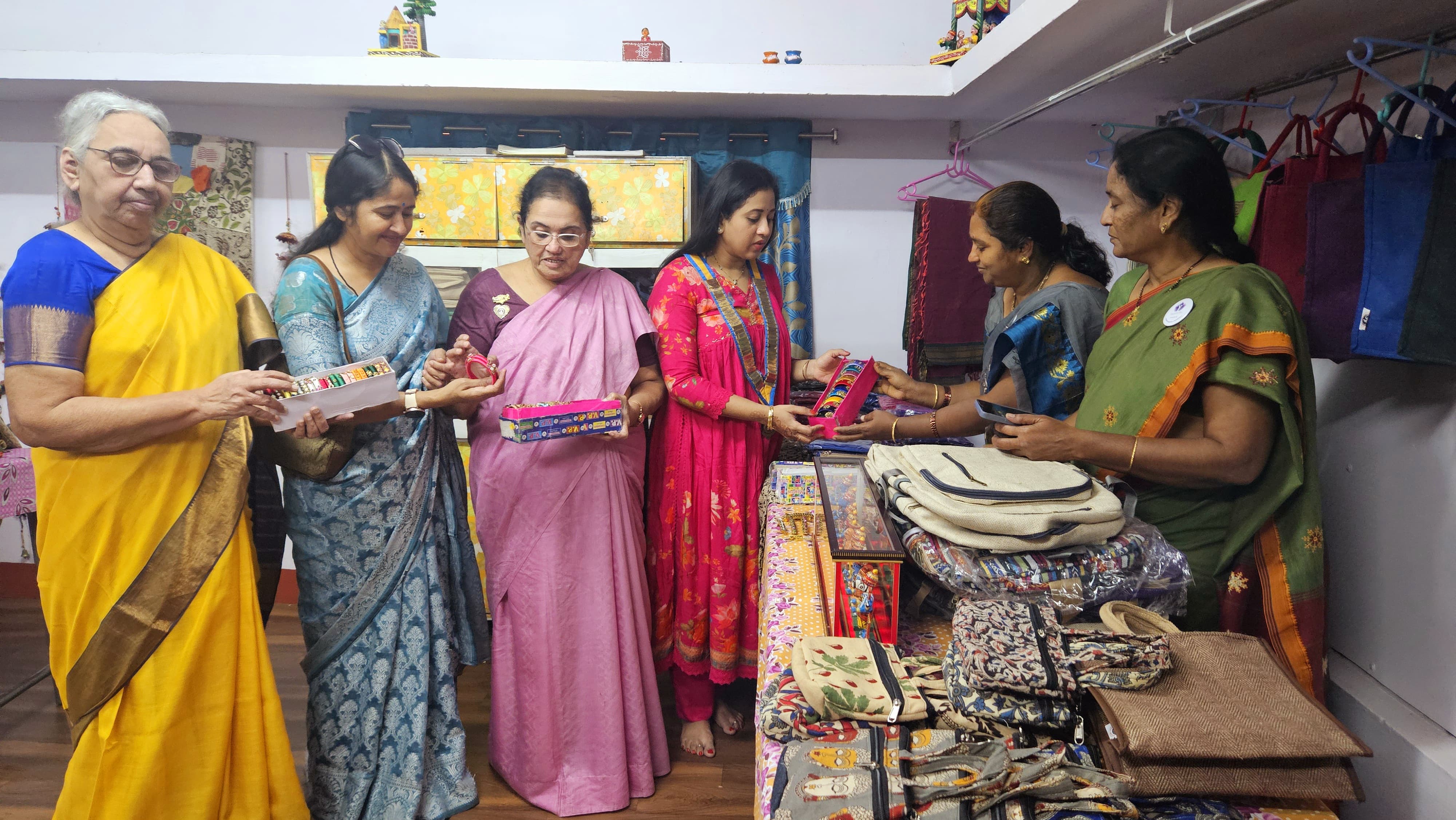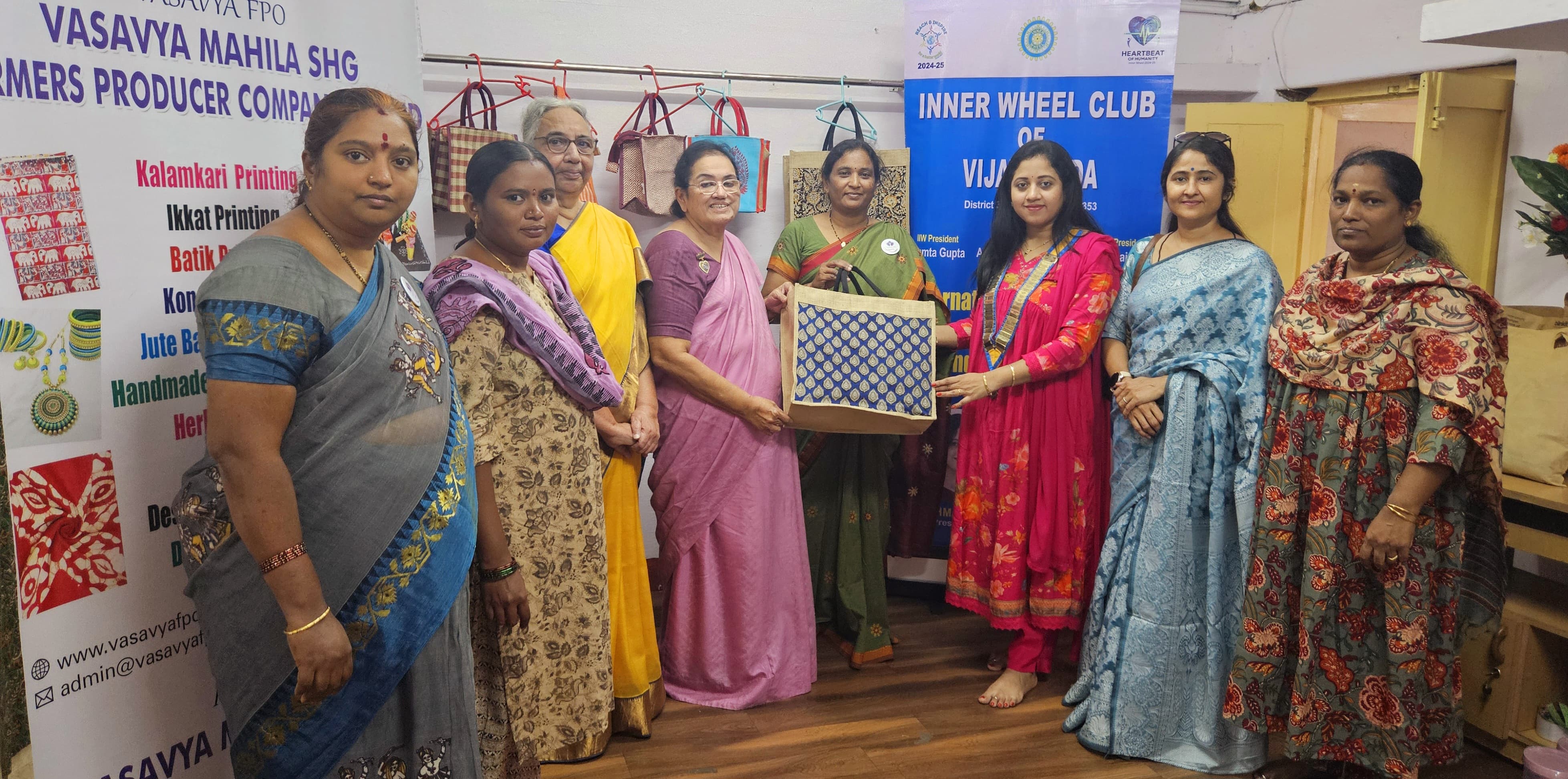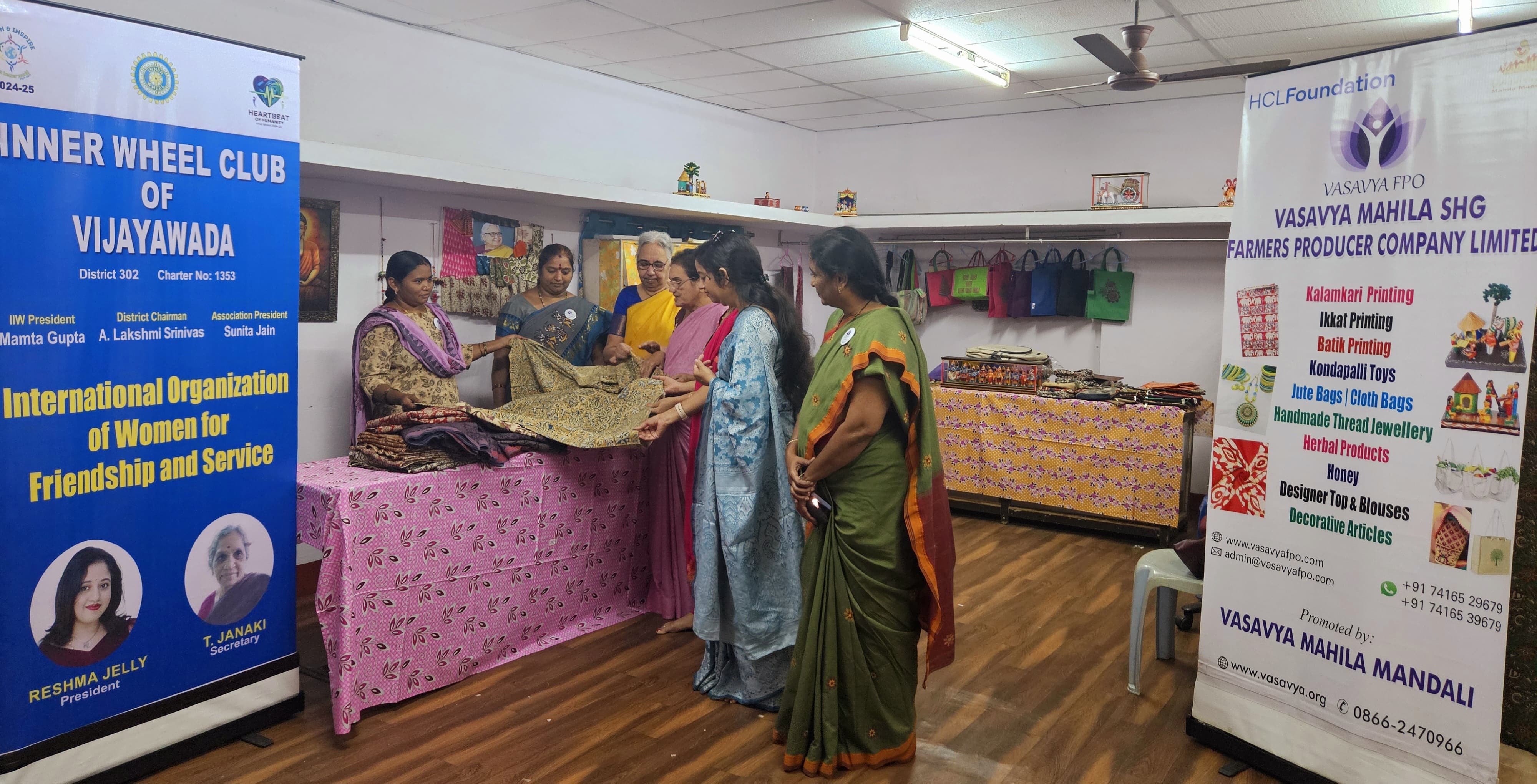 Women Entrepreneurs of SHG on the occasion of International Inner Wheel Day.We organized exhibition & sale of their products like handloom sarees,kalamkari dress materials,jute bags,thread Jewellery, herbal products,honey, Kondapalli handicrafts