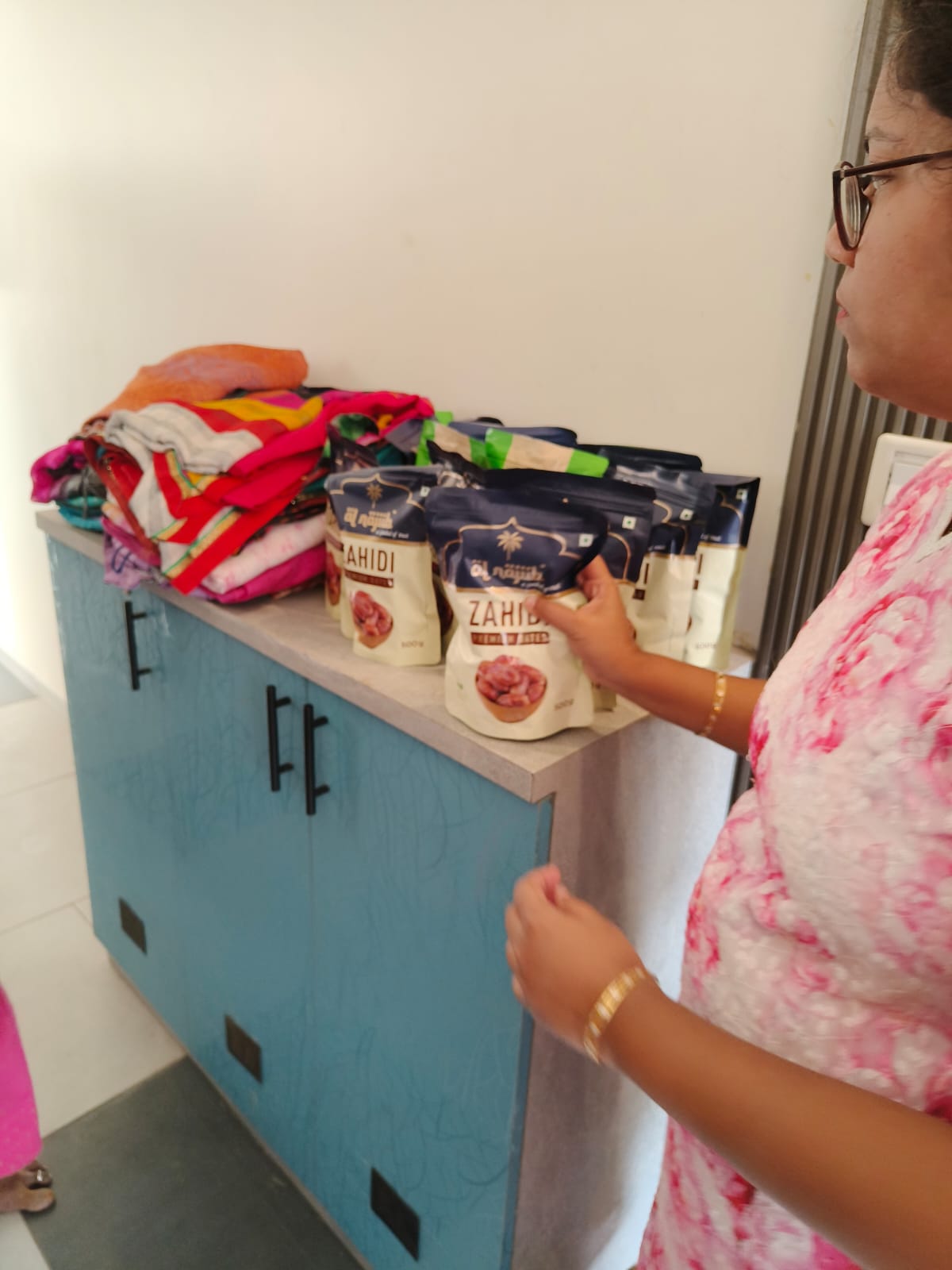 On the Occassion of sankranti we distributed sarees and nutritious food( dates) to community workers.