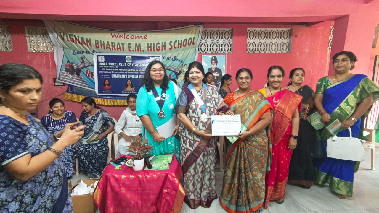 ⚜ District : 302 ⚜ Club name:Inner Wheel Club Of Vijayawada DIVAS ⚜ Project Date: 18/09/2025 ⚜ Project Name: Meri Kitaab Distribution at Vignan Bharat School ⚜ Project Description: On the occasion of the District Chairmans official visit, the IWC of Vijayawada DIVAS organised a Meri Kitaab distribution drive at Vignan Bharath School, Poranki. A total of 450 books were distributed to students, emphasising the importance of education and values in shaping young minds.