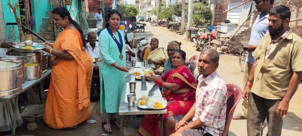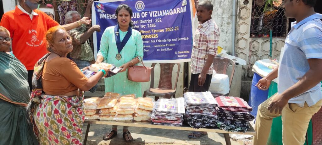 Members distributed 35 bed sheets, bread to poor people and old aged persons….also provided lunch to them.