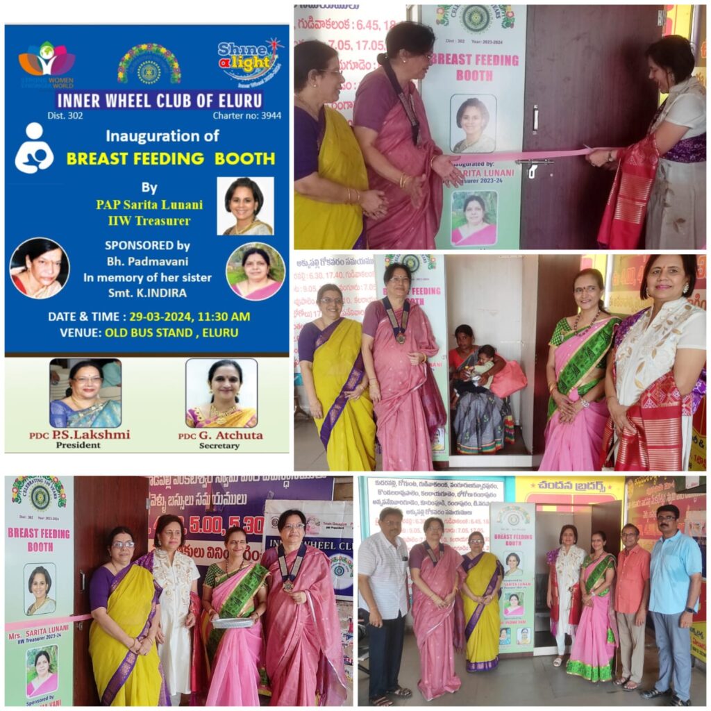 🟢District- 302 🟢Project- Rising strong 🟢Club. – INNER WHEEL CLUB OF ELURU 🟢Project theme- Mother feeding booth in public places 🟢Date – 20/04/2024