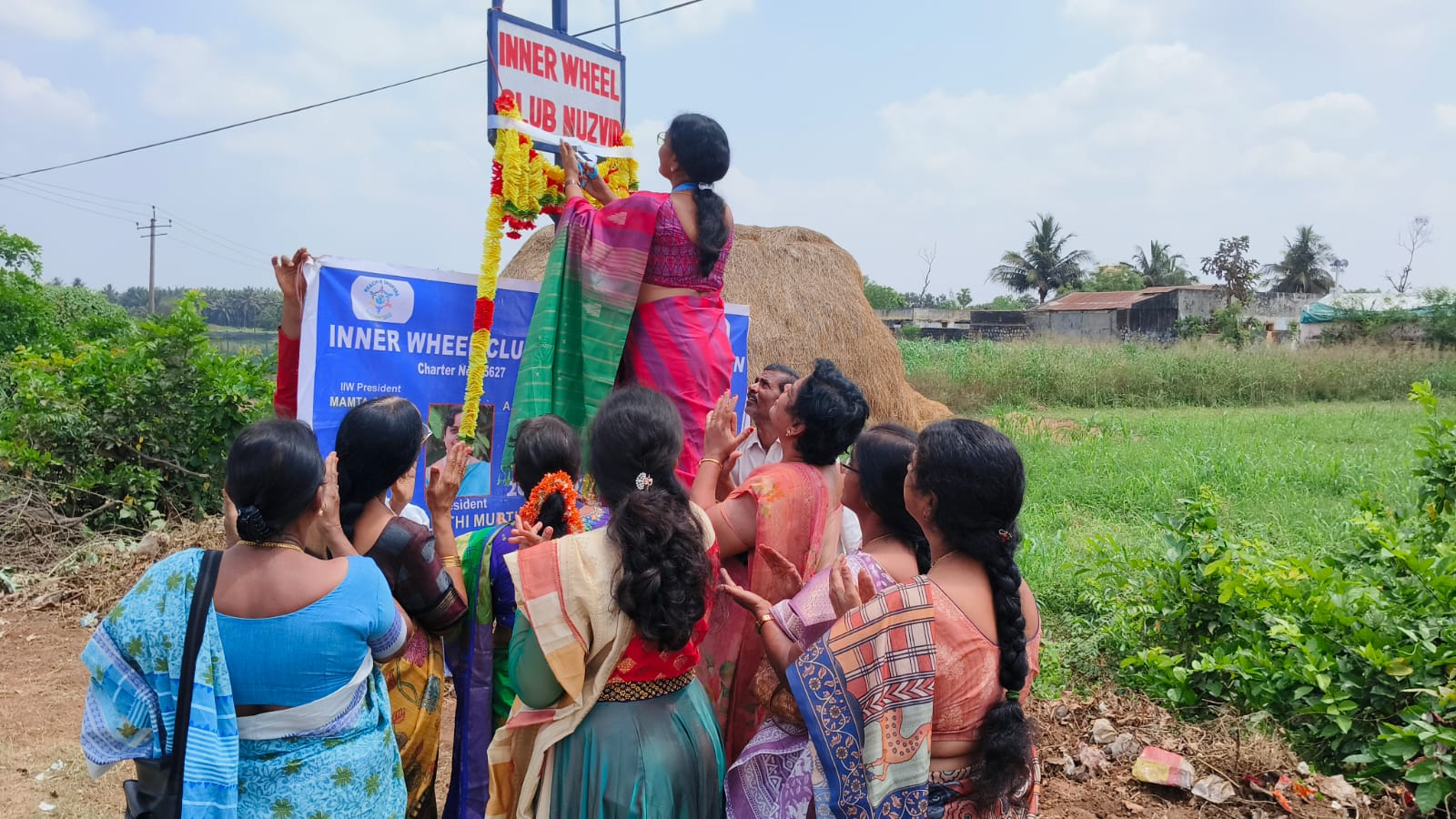 Description:- During Chairmain visit we inaugurated WELCOME BOARD with Innerwheel logo and details at Nuzvid Bypass Road.