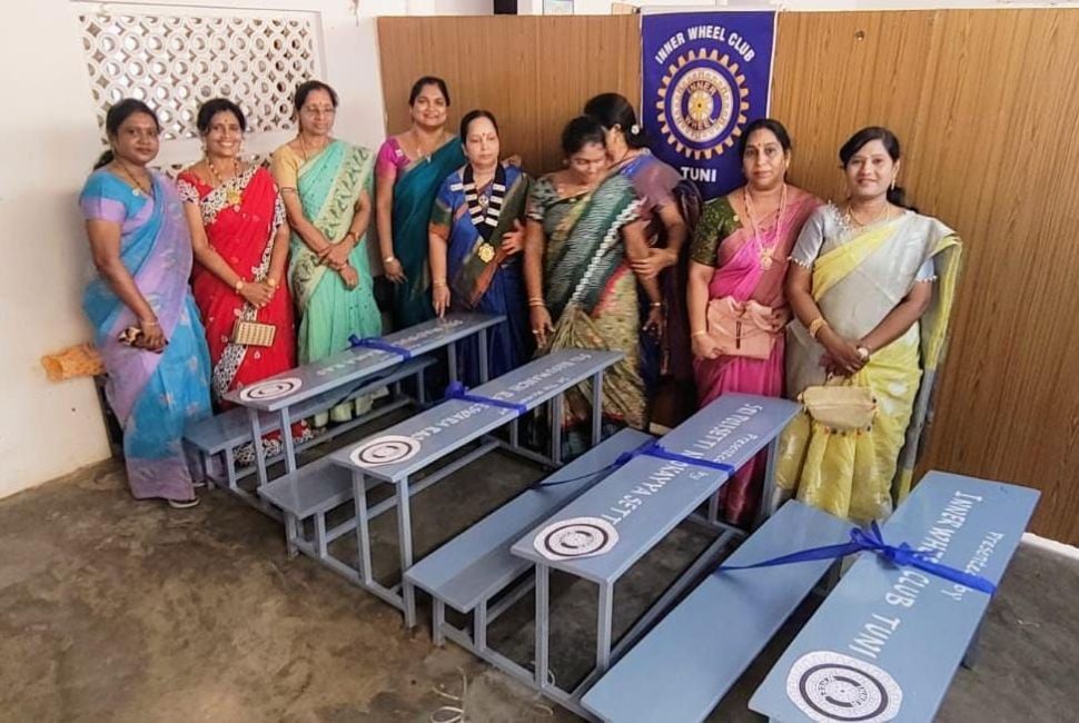 Donated 5 bench cum desks to Sri English medium school, Tuni, aiming to enhance the learning environment for students. This contribution supports better seating arrangements and promotes a more comfortable and organized classroom experience