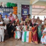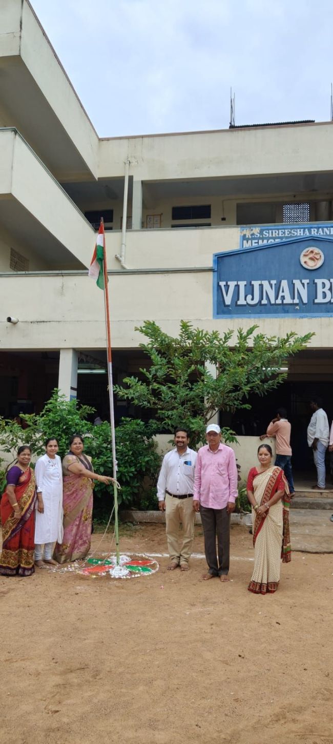 On the occasion of the 79th Independence Day, celebrations were held at Vignana Bharathi High School with the enthusiastic participation of over 500 students. The event was marked by patriotic fervor, with students taking part in various cultural and thematic performances. Some students dressed up as Bharat Mata and notable national leaders, adding a vibrant and inspiring touch to the celebrations. As part of the program, sweets, biscuits, and pens were distributed to all the students, fostering joy and unity.