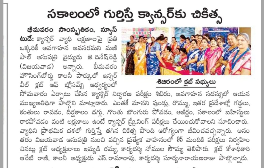 Name of the club: INNERWHEEL CLUB OF BHIMAVARAM BLOSSOMS