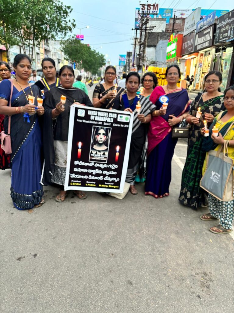 Description:- Inner Wheel Club Of Anakapalle Conducted Rally on Demand of Injustice to Slain Doctor at Calcutta. All our members went by Rally on Main Roads carrying candles. Public noticed and supported