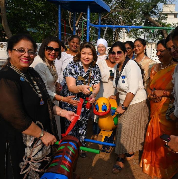 International Innerwheel President Zenaida Farcon, International Treasurer Sarita Lunani, Association President Dr. Surjit Kaur, District Chairman Sita Devi, inaugurated a statue of Inner Wheel Founder Margarette Oliver Golding in a children’s park which was developed by IWC Vijayawada Mid Town at Government Hospital, the pediatric ward in Vijayawada. This is the first statue of the Inner Wheel founder in District 302.