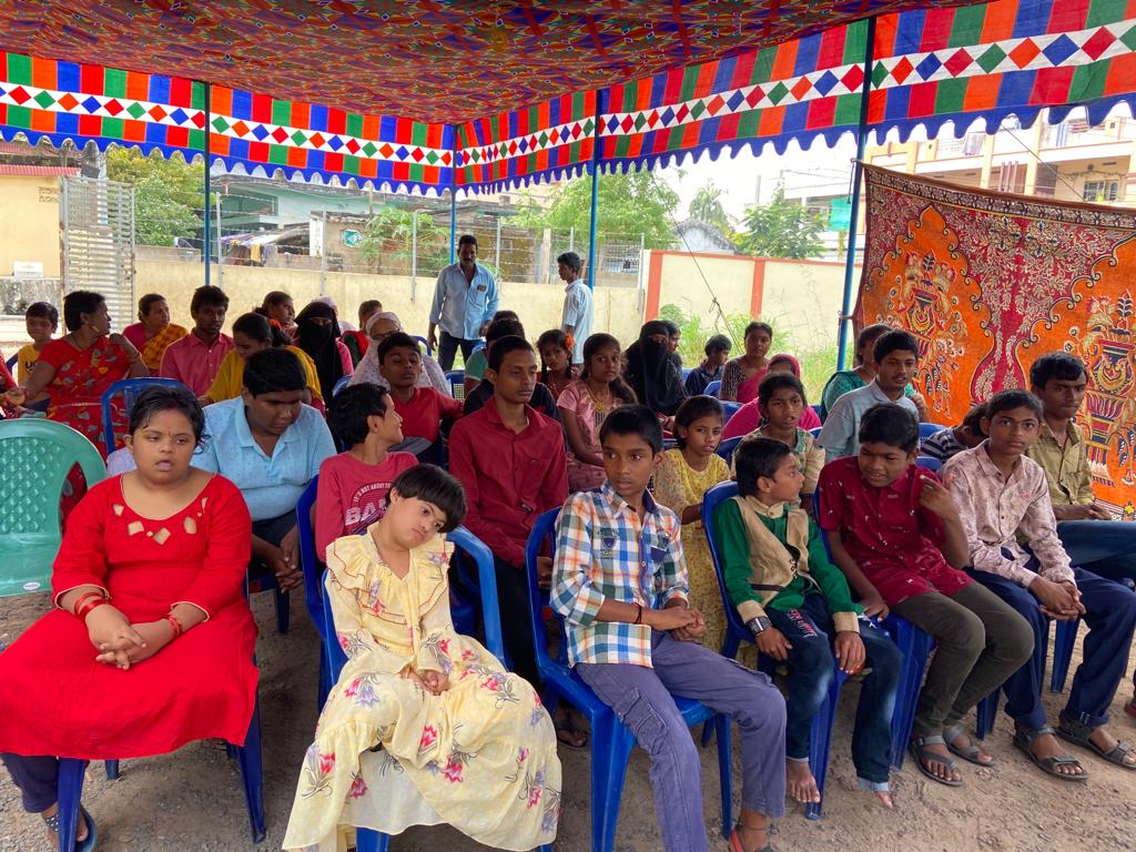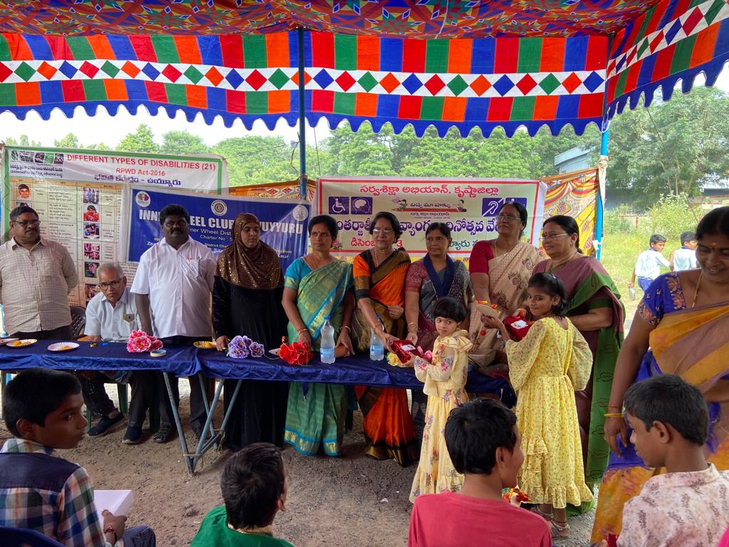 On the eve of International day of disabilities distributed food to 100 persons ( children and their parents) at Government handicapped school , Vuyyuru.