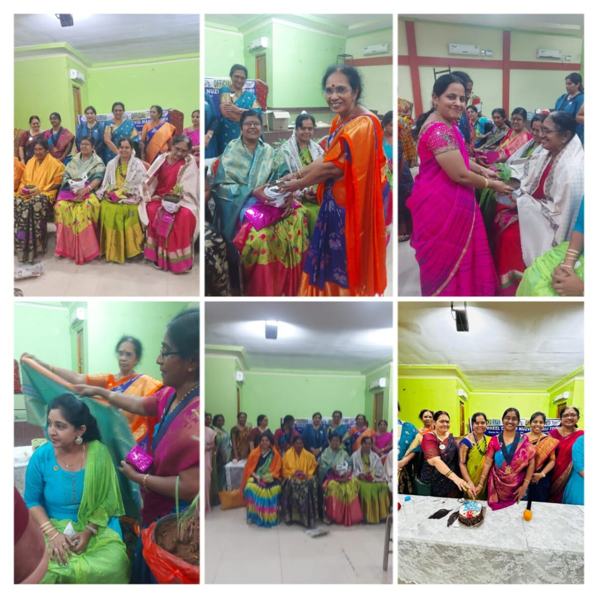 Floral theme :- Hall was decorated with flowers and members were dressed in floral sarees and dresses. Housies were conducted on floral theme. Snacks and sweets were given to all members. Iw Radika, Iw sarada, Syamala, sarita, Sowjanya and komali conducted these competitions and continuous lucky dips were taken. Beneficiaries:/ All members Project worth :- 10 thousand District Chairman-.Mrs.Gandham.Sreedevi
