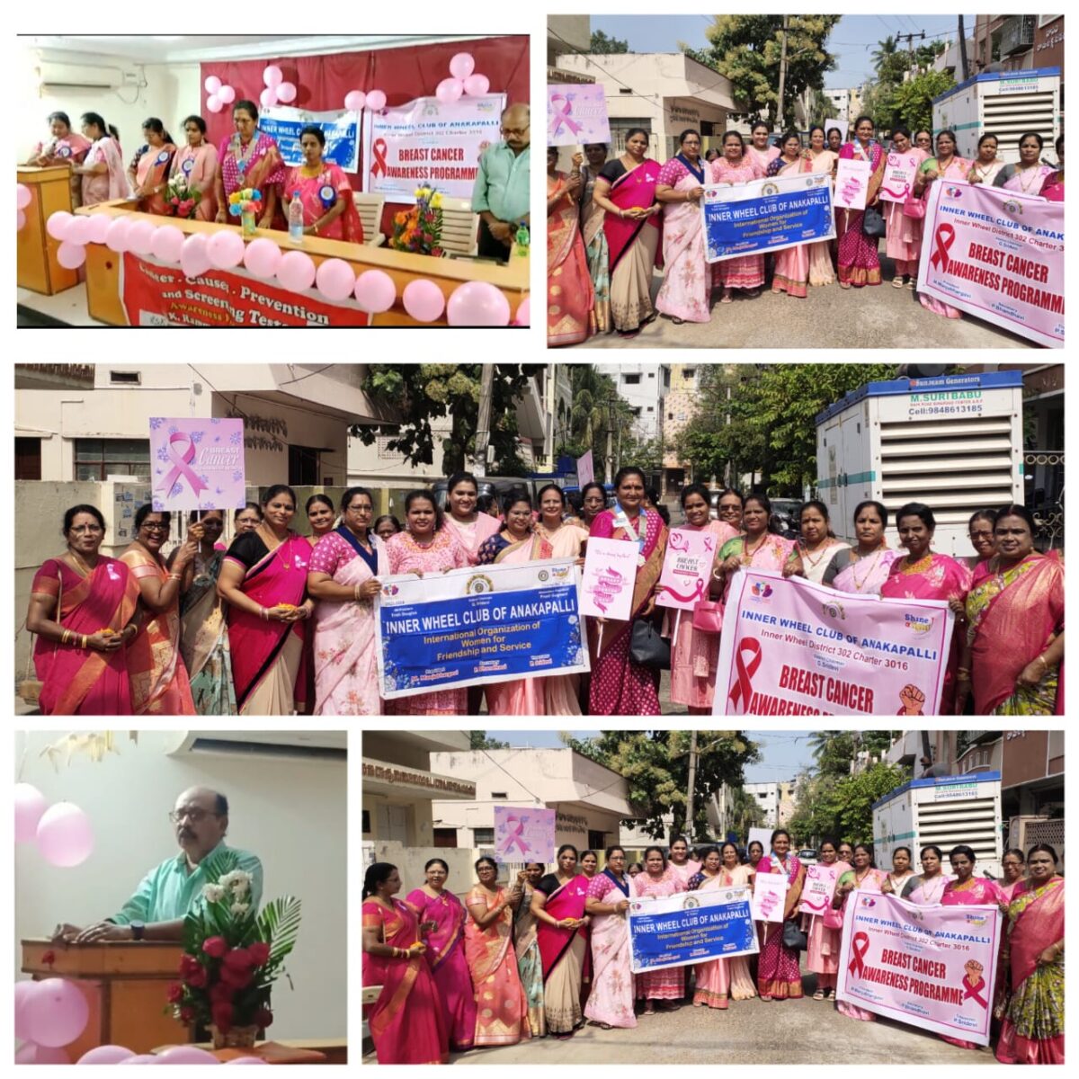 Description:-October is the month of cancer Awareness. To bring Breast cancer awareness among society we conducted Pink Rally on Anakapalle roads. All our members, our District Chairman IwSridevi and PDCP.Sita Prasad participated in Pink Rally. Our members displayed placards with slogans Fight cancer-Treat cancer,