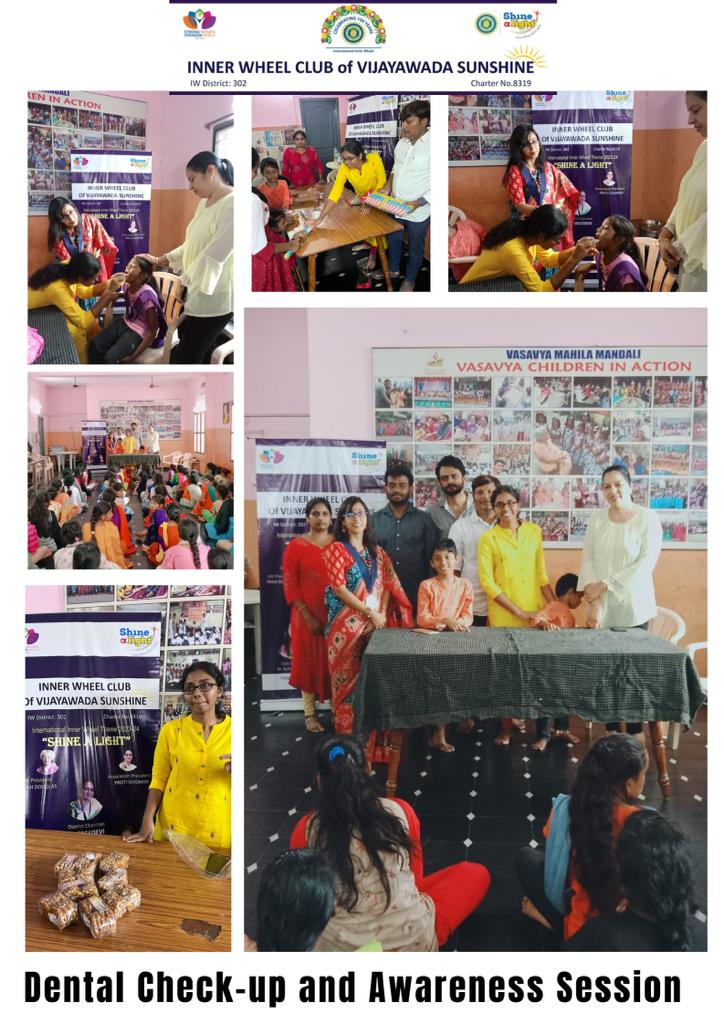 Project Description: *“ Life is all about spreading smiles “ * With an objective spreading true smile, IWC Vijayawada Sunshine conducted Dental check ups camp for 70 girls inmates of VMM UDRH Orphanage under the initiative of our Club Secretary Dr. Bhargavi who had observed the dental needs in the students during the Friendship Day Celebrations at Aethist center. Dr. Bhargavi along with her team of 4 Dr’s from SRI SUDANTHA DENTAL CLINIC AND IMPLANTS CENTER did a thorough dental examination and listed the dental needs for them. DR.BHARGAVI also enlightened the students with an AWARENESS SESSION ON ORAL HYGIENE MAINTENANCE.