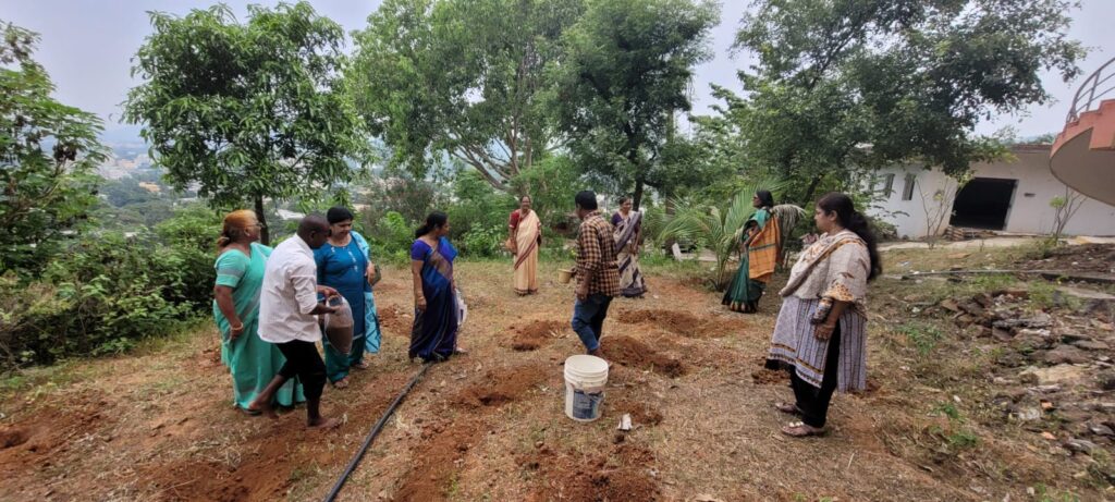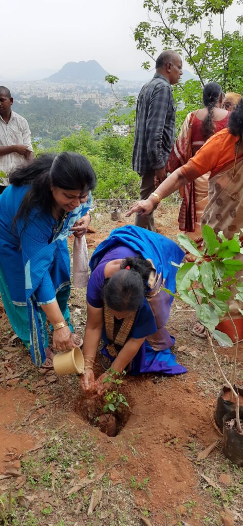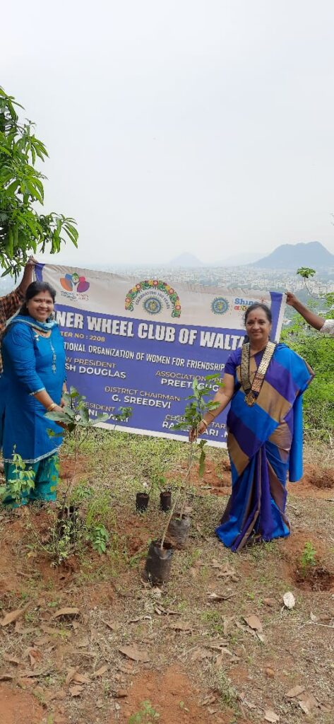 Name of the club:Inner wheel club of Waltair. Date:18/8/2023 District chairman: Mrs.G.Sreedevi Project : TRAIL BLAZER Go Green Our District ESO Arunasree garu planted 40 rose plants in Lendi vanam at Vepaguta Saibaba temple.Vepa ,Kaanuga and Neredu trees were also planted.Our members actively planted the plants and the place was very beautiful