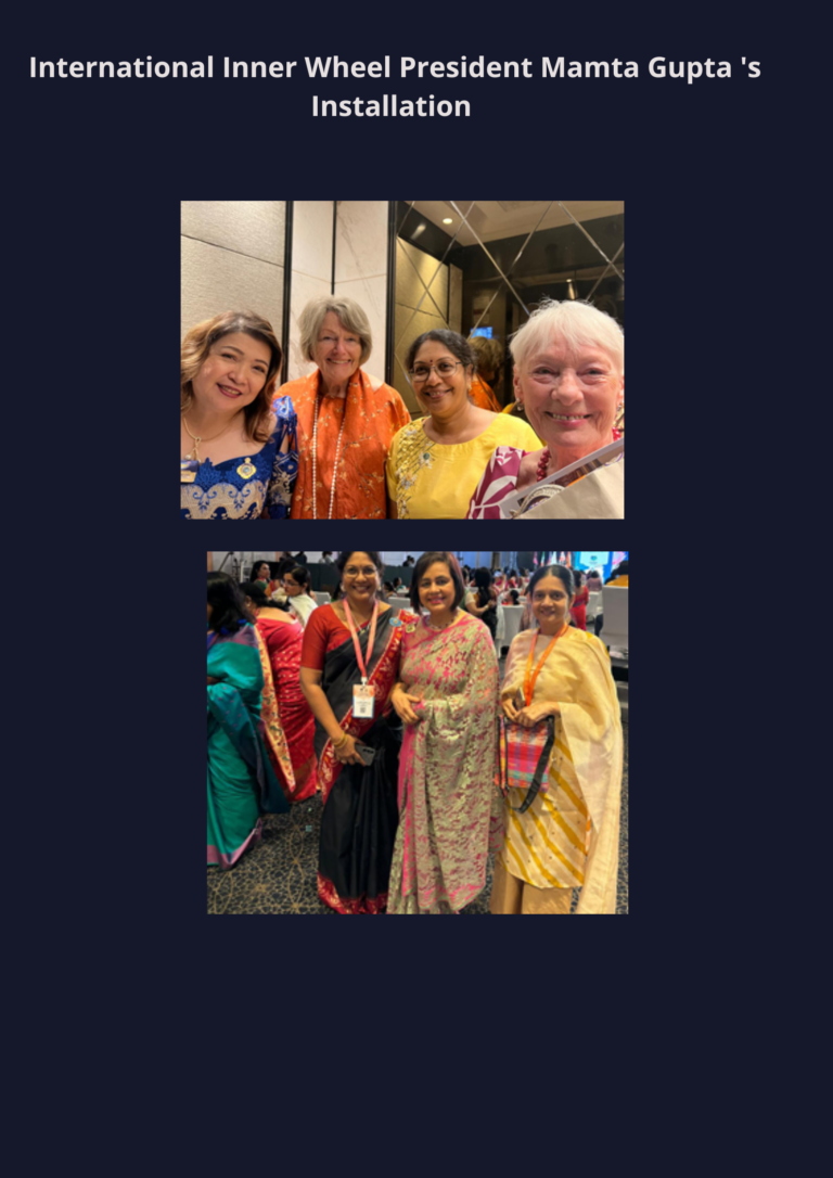 Four members from our District participated in the Epoch Flow , the International Inner Wheel President Mamta Gupta’s Installation in Kolkata on June 26, 2024. The event was truly magnificent, with attendees from various countries worldwide . The highlight of the evening was the ceremonial installation of the new International Inner Wheel President. Dressed in an elegant sari, she gracefully accepted the mantle of leadership, her speech resonating with themes of empowerment, service, and international friendship. Her words inspired the audience, emphasizing the importance of working together to create a positive impact in communities around the globe. As the evening progressed, guests enjoyed a sumptuous dinner featuring a fusion of traditional Indian and international cuisines. Music and dance performances added to the festive ambiance, showcasing the diverse talents and cultures represented at the event. The Epoch Flow event concluded with a sense of accomplishment and optimism, leaving everyone eagerly anticipating the future endeavors of the International Inner Wheel community.