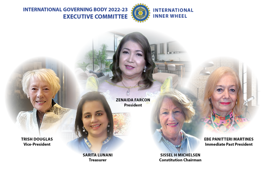 INTERNATIONAL INNER WHEEL is the administrative body of Inner Wheel organisations worldwide. It is governed by an Executive Committee of five elected officers: President, Vice-President, Immediate Past President, Treasurer, and Constitution Chairman.