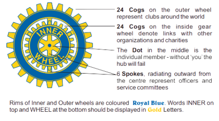 The Inner Wheel emblem is a small wheel contained with in the Rotary Wheel and hence the name “Inner Wheel” highlighting our close association with Rotary. The wheel is universally seen as a symbol of Progress It represents movement, mobility, change, action, time, unity, completeness, justice and perfection. We generally speak of the wheel of time, the wheel of fortune, the wheel of life and the wheel of love.