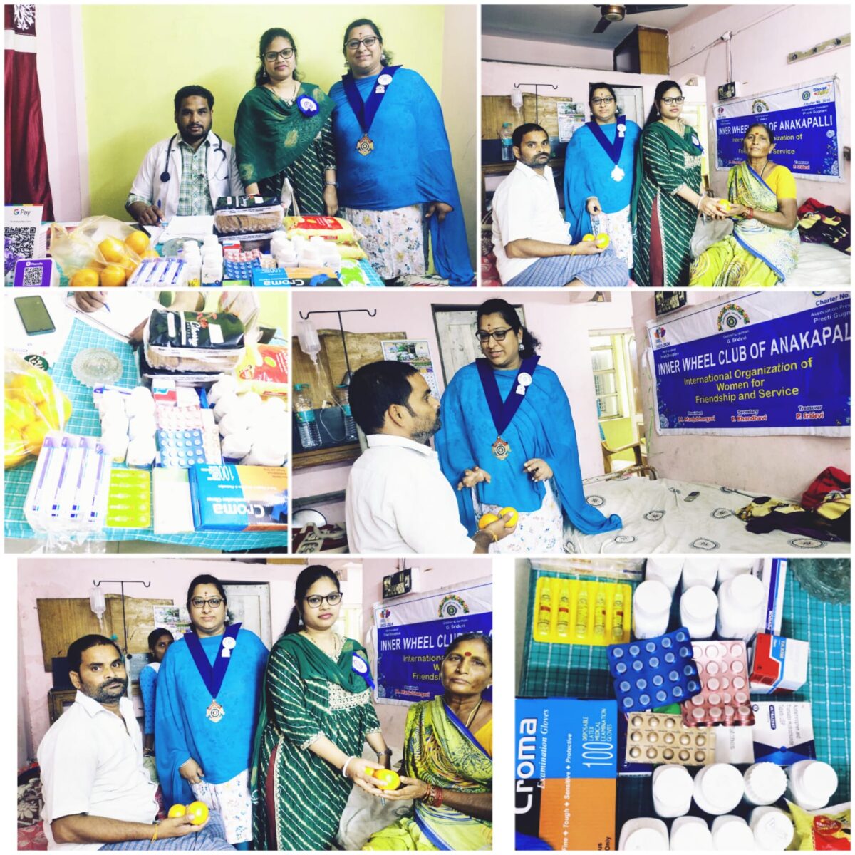 Description:- Inner wheel club of Anakapalle conducted Health camp at Lalitha Aurvedic Hospital. We distributed Aurvedic medicines worth of 5,000/- and fruits to patients