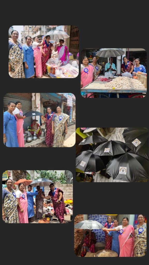 Project description : Project :-Inner wheel club of Anakapalle, donated umbrellas with Inner Wheel emblems, to Lady Vegetable Vendors to get shelter from heat and rain.