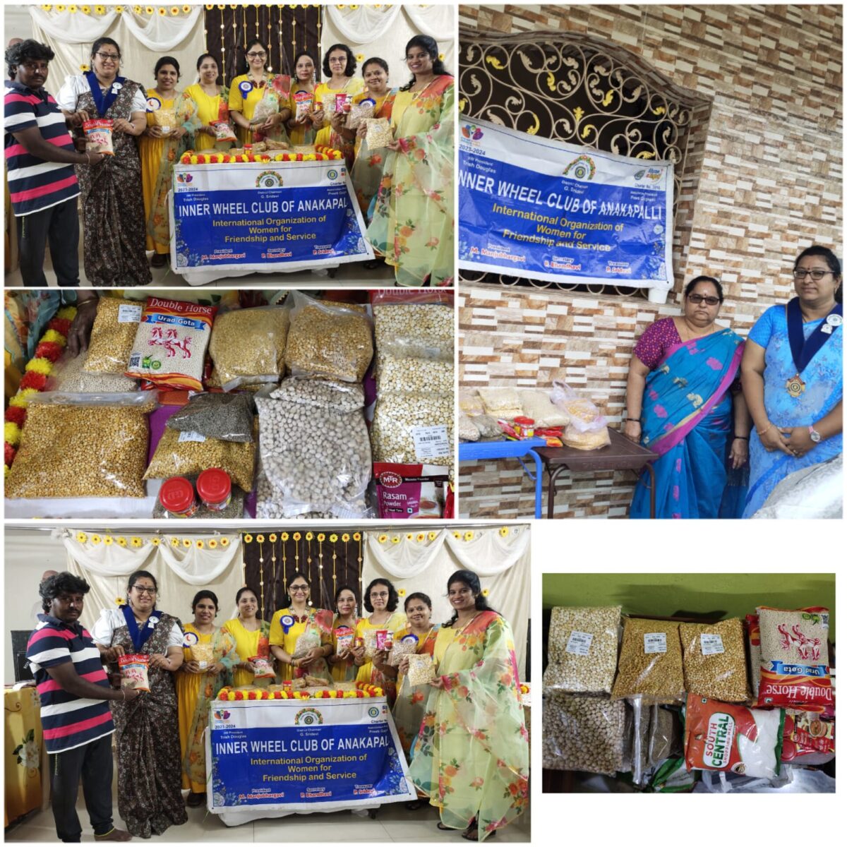 Description:-Inner wheel members Radhika,Sarada,Shyamala,komali, sarita, Sowjanya and Nishkala donated Groceries worth of 5,000/- Our PDC Sitaprasad donated 10 kgs rice bag to Lalitha oldage home, Appalarajapuram near Vaddadi. Total 40 members r there in the home