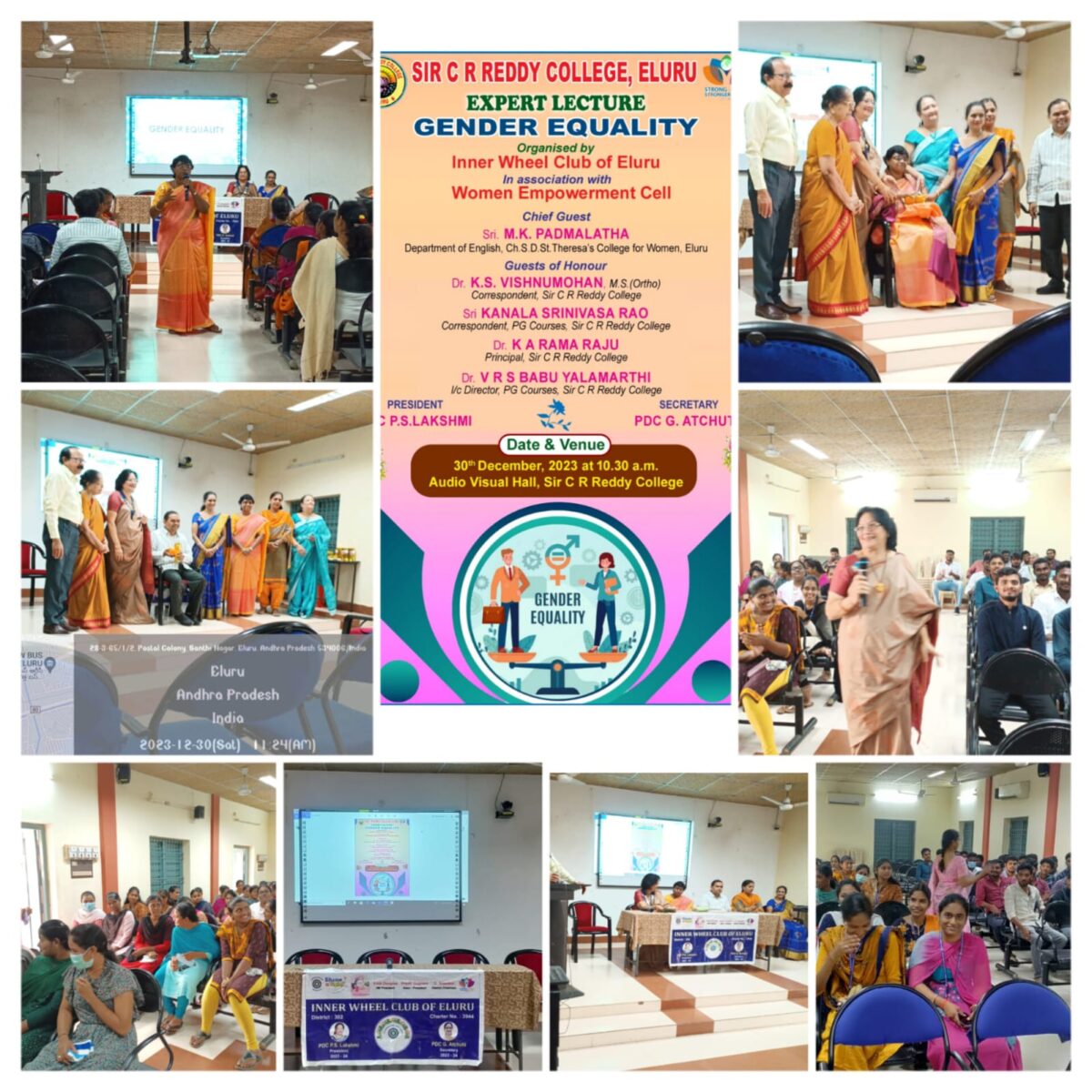 We have organised a seminar (expert lecture) on gender equality to the students of Sir CRR Autonomous college Eluru.The seminar is thought provoking and given by PADMALATHA ,a senior most ENGLISH LECTURER& SPEAKER from St. Theresa’s college for women.