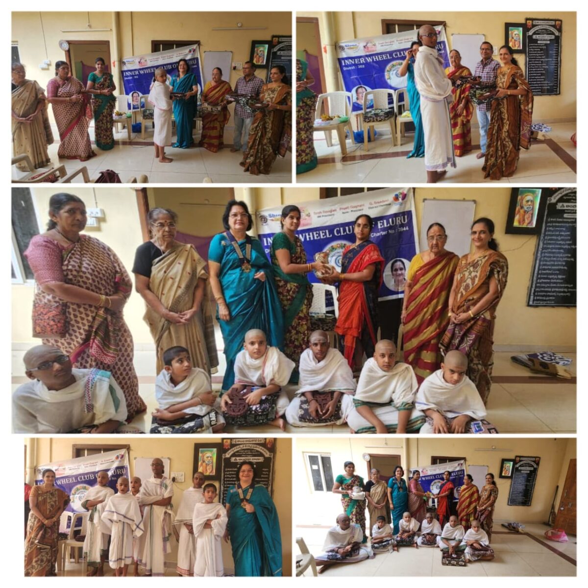 We have distributed rice bags,2kg cow ghee as part of a continuous project every month.Also 10 bed sheets,10 book stands,sweets,fruits to children and gograsam to cows at Samskrutha Veda smartha patasala at Eluru.