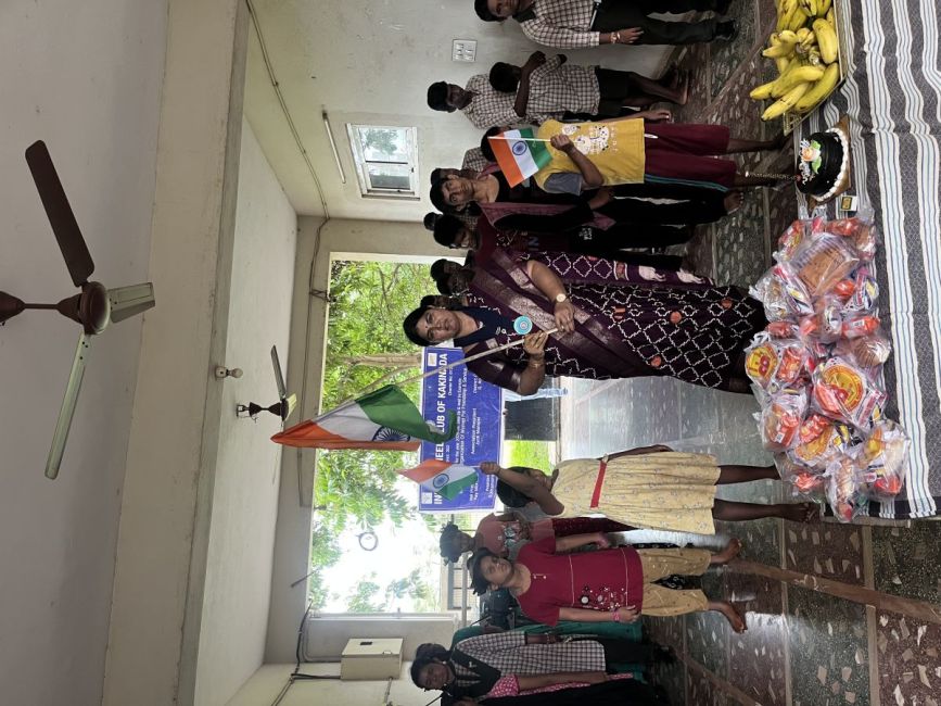 - Our club has celebrated Independence Day At blind school by distributing cakes biscuits fruits and fruits diner Tanuja