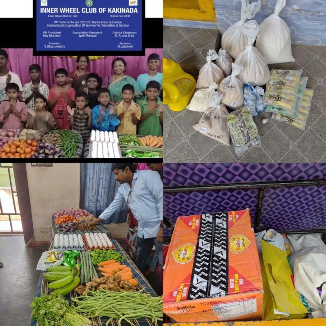 - Our club member Neelima Raj Donated Groceries with Rice bag and vegetables, Eggs to Rainbow Children Home in-which ADIS And Orphans are three.