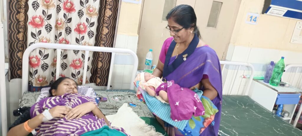 We aware the mother about hygiene and how to do feeding and what food intake toget nutritious and more milk along with our secretary Yarlgadda Vishnupriya Editor B.Sunitha