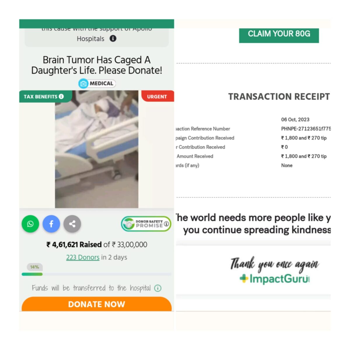 Venue: E- payment through ImpactGuru donations rise sight
