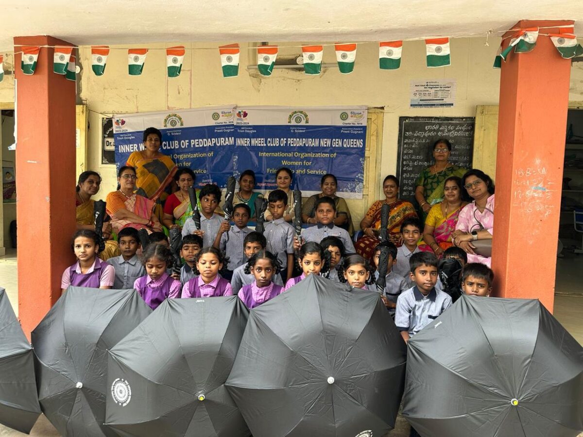 Project description: For 20 students in Chanikya school we gave umbrella’s with inner wheel logo printed on them as it’s was rainy season.
