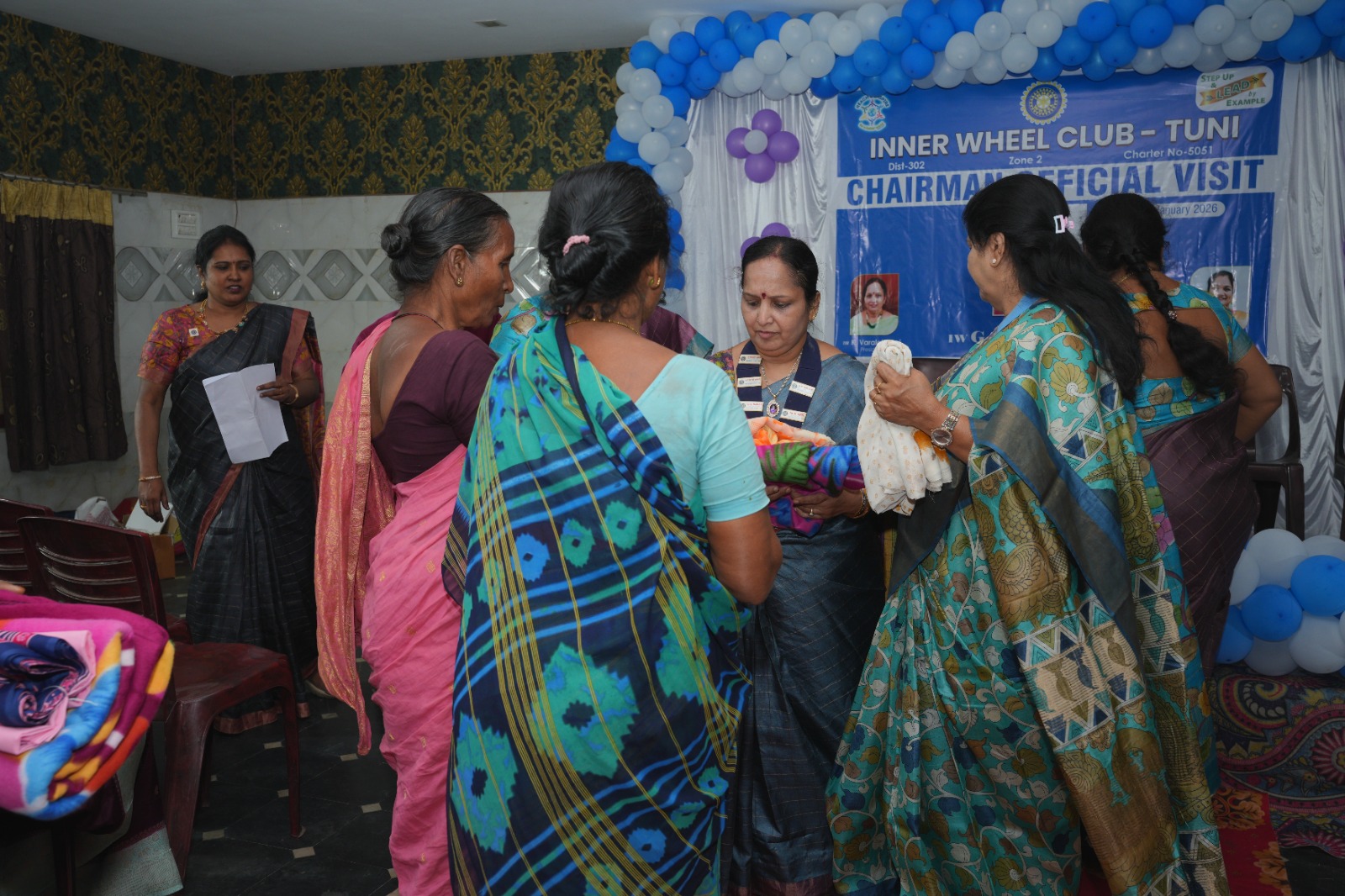 Forty sarees were distributed to sanitation workers of Tuni Municipality as a mark of respect for their essential services.