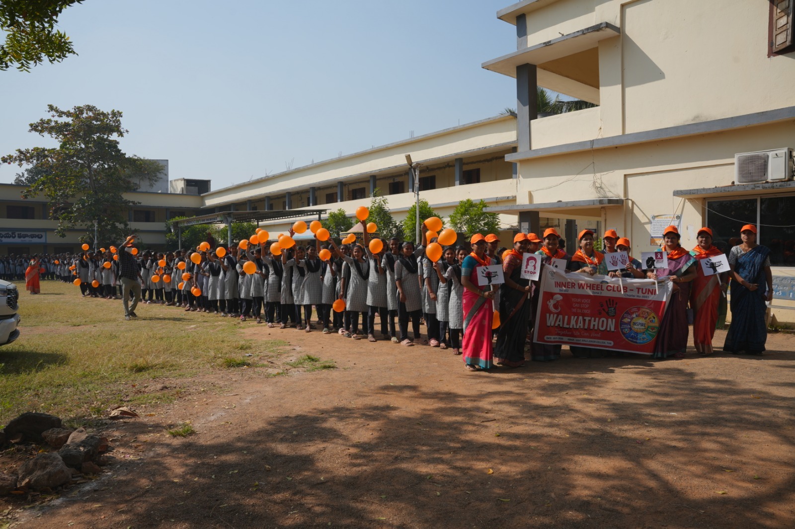 A large-scale walkathon was conducted with 500 students and 20 teachers under the global campaign “Orange the World – Stop Violence against Women.” Pledges were taken to break silence against violence, handprints were taken on cloth for motivation, and biscuits and pens were distributed to 500 participants.