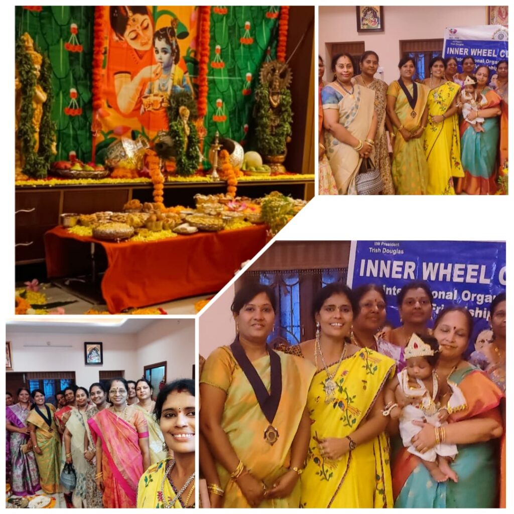 Project description : krishna Aata mi celebrations in innerwheel club tuni. We celebrated at gita samajam, Different kinds of prasadams prepared by our members as naivedyam. Decorated krishna very beautifully. Kolatam was done by ladies and also song’s were sung on krishna. Very memorable festival. Elite of the town attended the festival. Unjal seva was done to krishna.