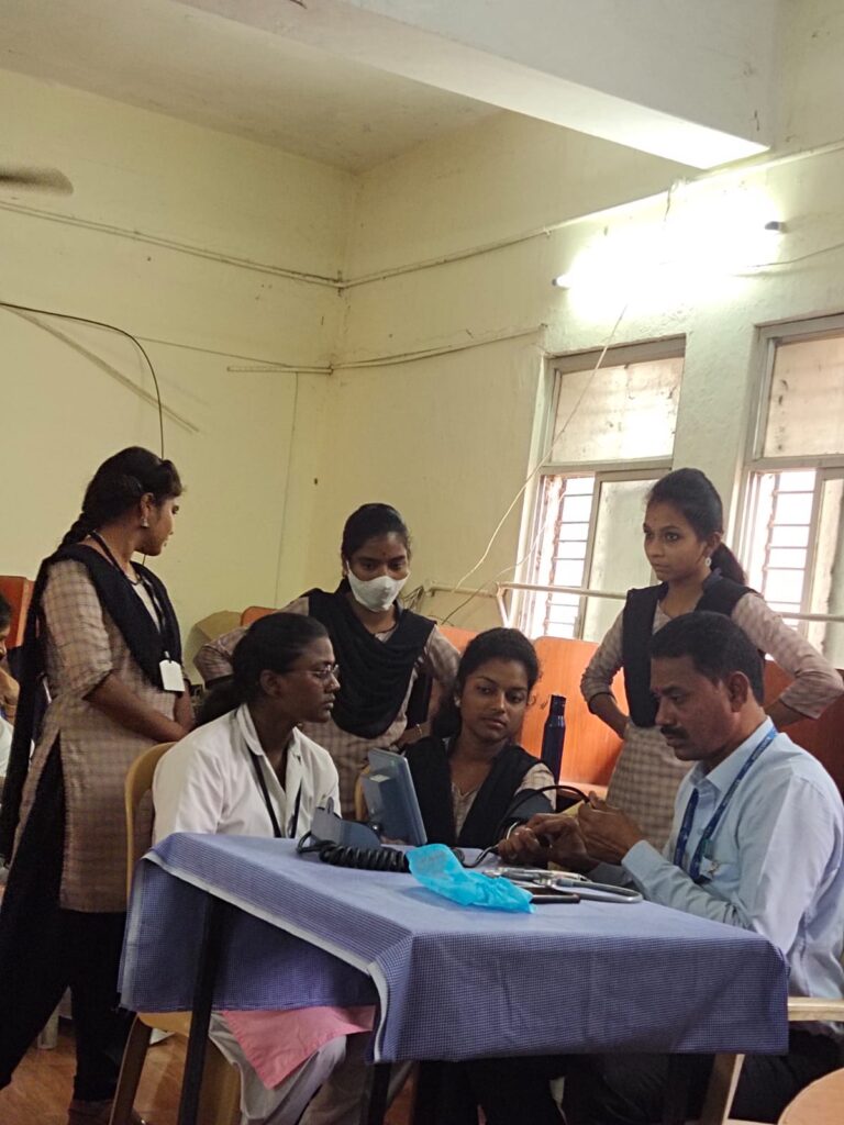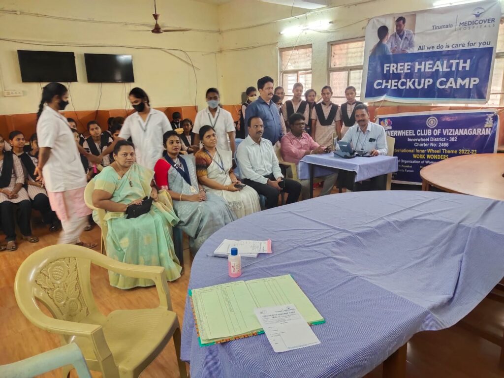 In association with rotary organized Anemia test to nearly 200 girl students and staff in MR college. Identified anaemic students and suggested them the required medicines under the guidance of member Dr.Krishnashanti garu.