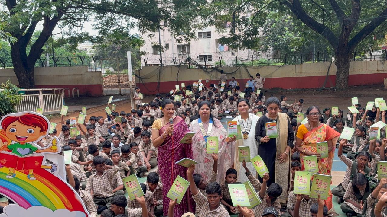 *Project Description – We distributed Meri Kitaab notebooks -Inner Wheel India to 350 students of KDPM GVMC High School ,East Point Colony and Chinna Waltair GVMC School to spread creative learning and the power of knowledge. Meri Kitaab notebook enhances student learning by providing them contextual study tools such as Map pointing,ABC’s of Yoga for kids,disciplined daily routines etc.Children showed great enthusiasm and happiness on receiving the notebooks.